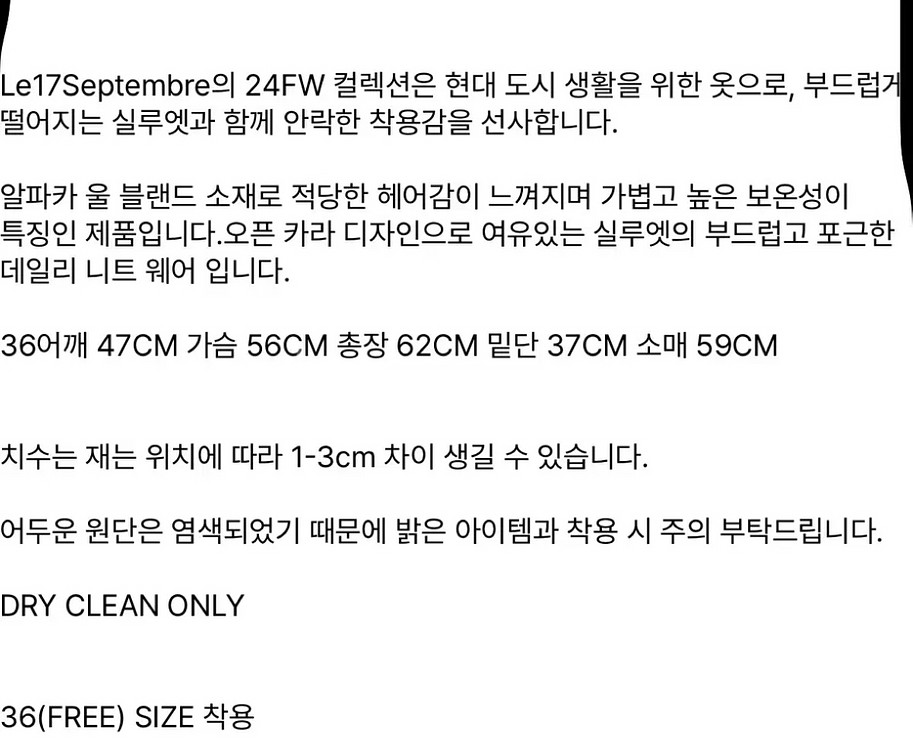 르917 wool blend open collar pullover 베이지 색상입니다 현재 품절된 상품입니다 저도 백화점에서 구매했었어요:) 하자 없습니다! 밑단이 예쁘게 잘 잡혀서 핏 이뻐요