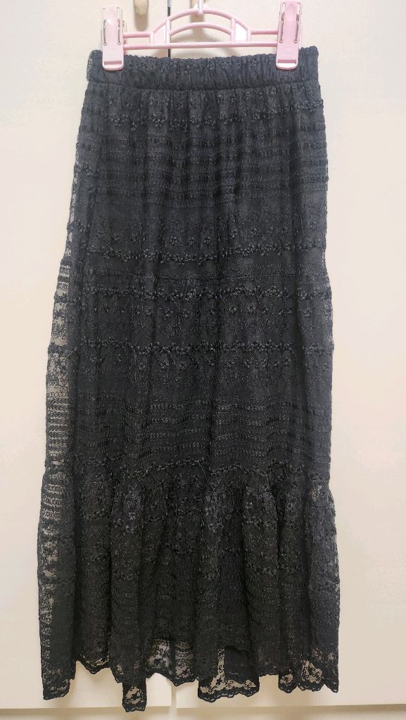 여성여성 예쁜 검은색 레이스 치마 허리고무줄이라 프리사이즈에요 치마길이 91센티 속치마 54센티 실착 거의없어 새것같이 깨끗해요(세탁완료) 다른 제 물품과 함께 구매시 네고 가능