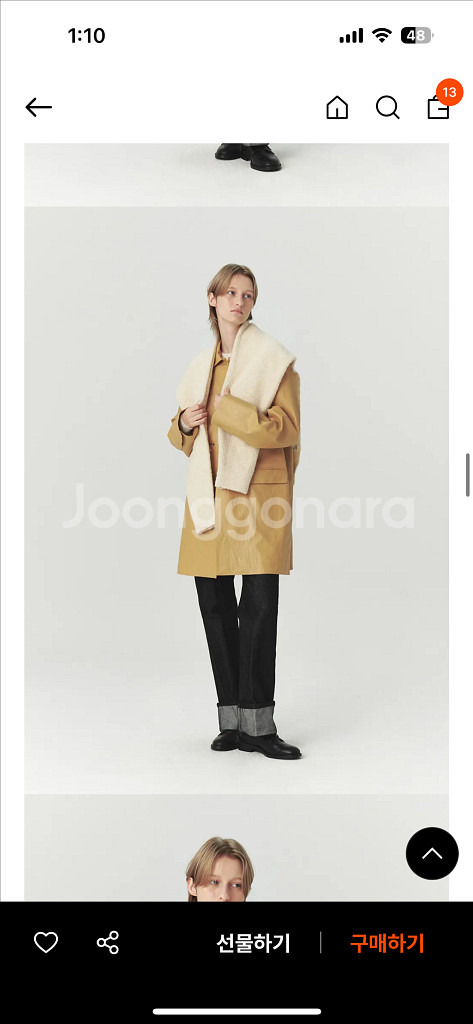 니트아니고 숄처럼 머플러처럼 활용가능한 머플러에요 크림컬러 29cm구입 코트에도 가디건에도 자켓에도 두루두루 활용하기 좋아서 컬러별로샀었어요 반값+2000 일반+3500
