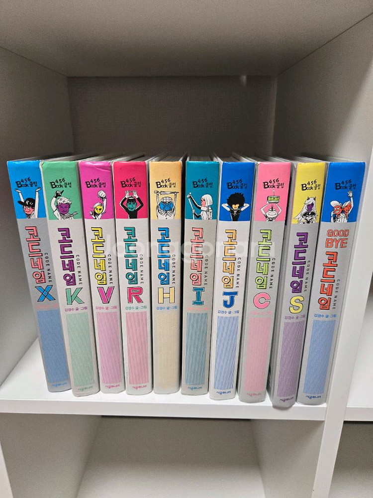 코드네임 1-10권 판매합니다. 저희 아이가 잘 읽을 스타일이 아니라서 중고로 샀던 제품이고 표지에 사용감(빛바램 때탐 모서리 접힘 등) 있으나 속은 깨끗합니다. K권이 유난히 책기둥 분리, 때탐이 있어서 사진 자세히 찍었습니다. 감안해서 책정한 택포 가격입니다.