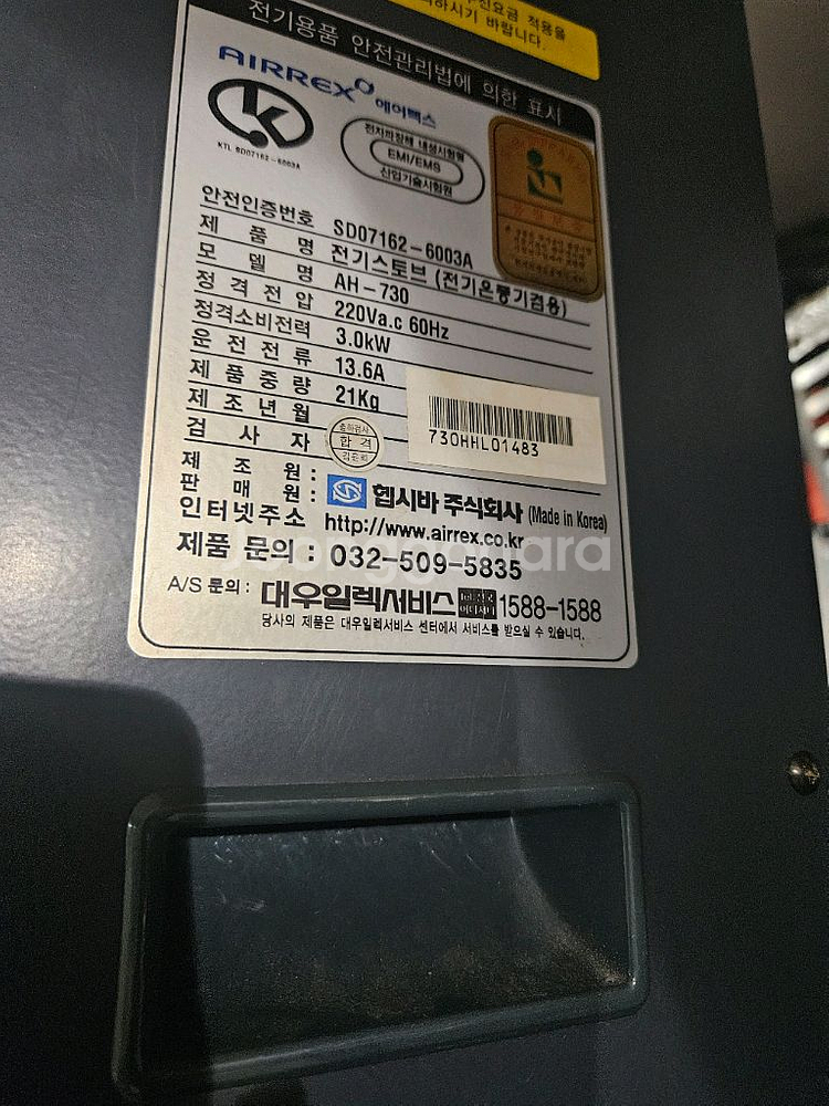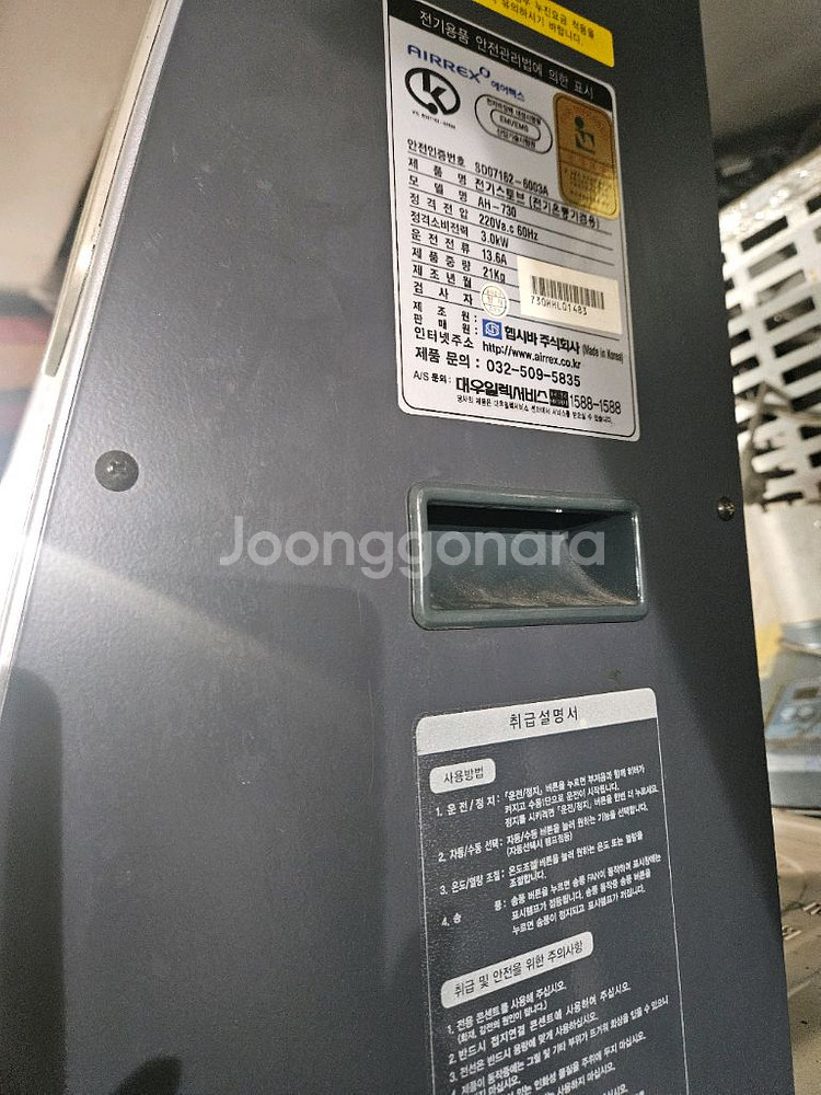 에어렉스 전기온풍기 히터난로 열풍기 캠핑난로 대형전기난로 3kw 송풍팬내장 되어서 바람이나와서 공기가 순환되어 전체 공간이 무척 따뜻합니다 인천 남동구 인주대로770 1층 필도카 로 인터넷 검색하시면 위치 주소지 연락처 확인후 전화 주세요 마지막 사진 보시고 전화 주세요