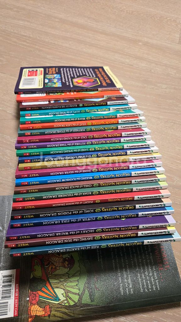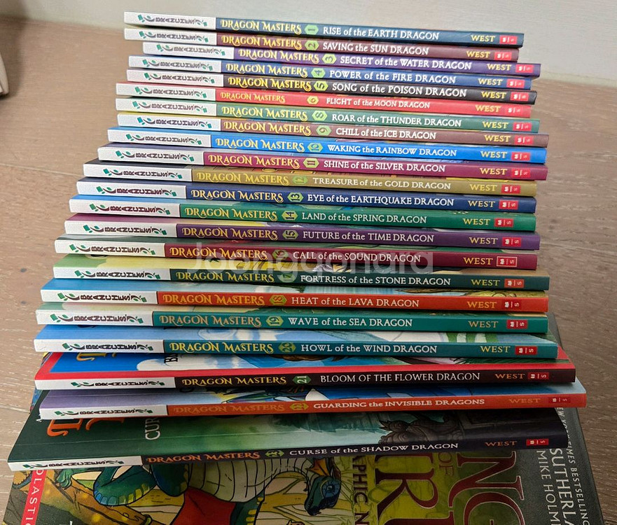 Dragon Masters 시리즈 영어 원서 23권 세트입니다. 제 7권은 분실된 상태 (총 22권) 책 깨끗함 (새것 수준) 내지 정보에 따르면 인쇄 국가가 Malaysia, USA, China 등이 섞여 있습니다. 원하시면 Wings of Fire (영어 만화책)도 추가로 드립니다. Tracy West 작가의 책 - 1학년~3학년 학생에게 적합 - 모험과 판타지 이야기가 담겨 있음.
