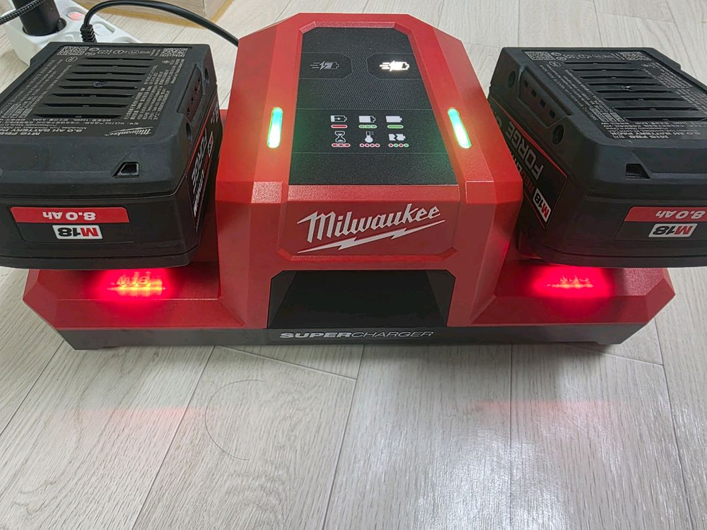 밀워키 M18 FORGE 8.0Ah 배터리 2개와 듀얼 급속 충전 세트입니다 - FORGE 기술로 차세대 배터리 기술로 향상된 성능을 제공합니다 - 듀얼 베이로 2개의 배터리를 동시에 충전할 수 있어 효율적입니다 - LED 표시등으로 충전 상태를 실시간으로 확인할 수 있습니다 약 3개월?정도 세차할때 송풍기에 사용했습니다 오산 인근 직거래 환영