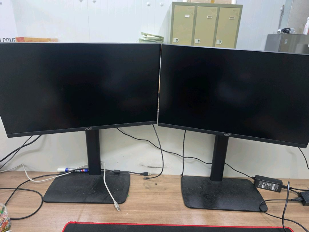 AOC Q24V QHD 24인치 모니터 2대와 앤산마운트 MA-10T 스탠드 2개 세트입니다 - QHD 고해상도로 선명한 화질을 제공합니다 - 75Hz 주사율로 부드러운 화면 전환이 가능합니다 모니터와 스탠드 모두 상태 양호합니다 5월에 구입하고 사무용으로 사용하다 정리합니다 오산 인근 직거래 환영