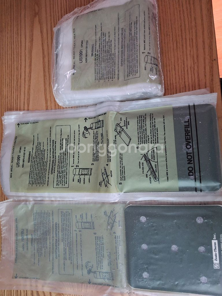개인정보(거래정보)를 주고받는 행위는 사기에 노출될 수 있으므로 즉시 중고나라로 신고해 주세요미군 정품 MRE 발열팩입니다 1991년식이라 소품용,디피용입니다 9개일괄 01063690756