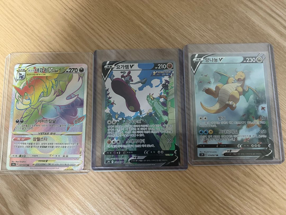 일괄판매입니다. 10만원에 17개 카드 다 드립니다 작년? 재작년?에 뽑아놓고 앞사진 3개 카드는 뽑자마자 바로 저 플라스틱?에 넣어놔서 s~a급입니다 나머지도 뽑고 상자? 박스?같은곳에 넣어놓아서 상태 다 좋습니다 뒷면도 까진게 아무것도 없습니다. 3개만 10만원에 팔려 했지만 나머지도 있어봤자 상자 안에만 있어서 보지도 않아 그냥 8만원에 싸게 다 드립니다 택배는 1500원받고 반택만 되고 직거래는 문자로 알려드려요(제가 문자 장소에 물건 두고 구매자분이 픽업하는) 네고는 안받습니다 급전필요해서 팍팍 줄인거라.