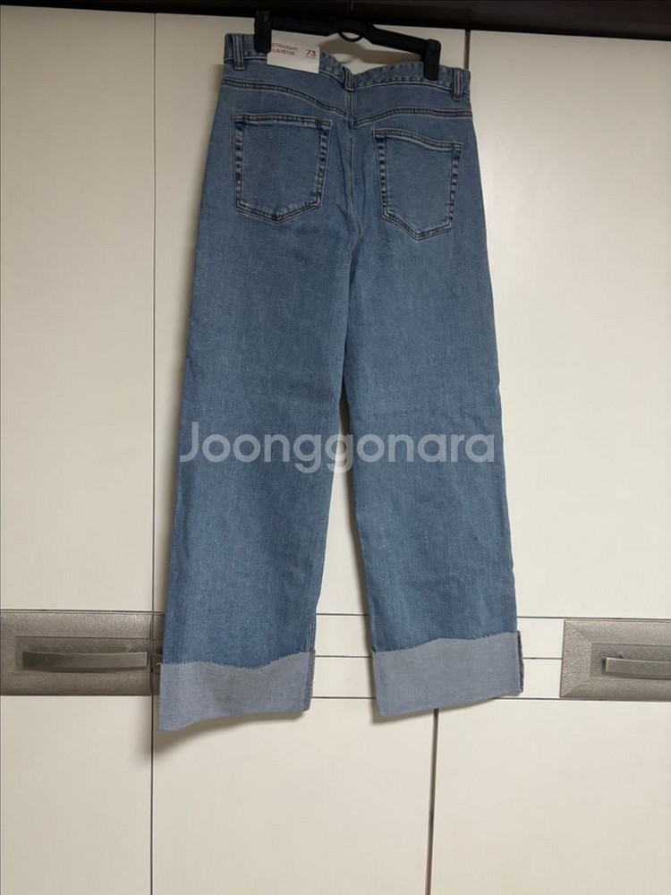 밑단에 포인트돼서 예쁜 바지입니다~! 산지는 좀 되었지만 안입은 새상품입니다 사이즈는 73 라지예요