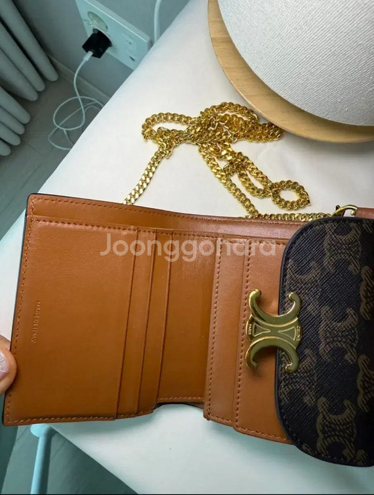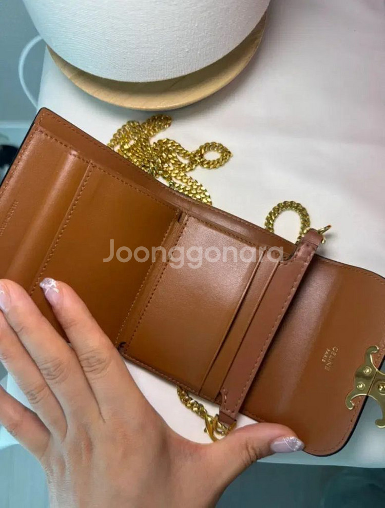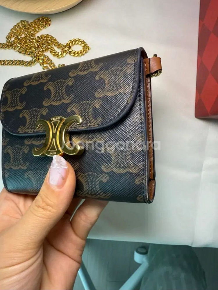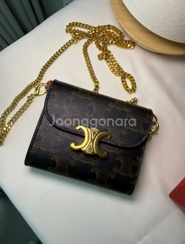 고급스러운 셀린느 트리오페 체인 카드지갑입니다. 트리오페 로고와 체인이 금색으로 되어있어 더욱 예뻐요. 카드, 지폐, 동전까지 수납 가능해서 활용도도 높습니다. 셀린느 트리옹프 체인 지갑입니다. - 브라운/블랙 컬러 - 내부 브라운 가죽 - 풀 구성 체인은 따로 구매해서 매칭한겁니다. 구매하시면 같이드려요. 메고다니기 편안해요. 사용감은 사진 참고해주세요. 문의 없으시면 바로 안전결제해주시면 됩니다!