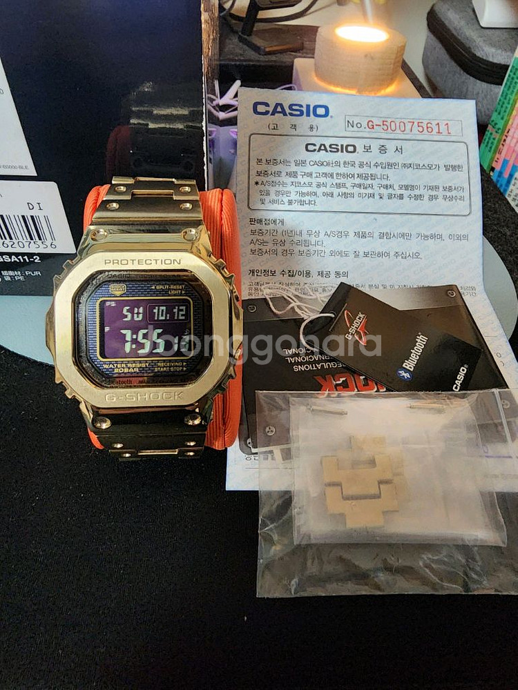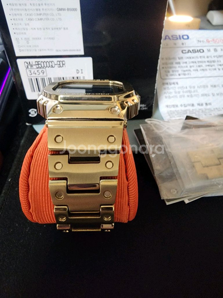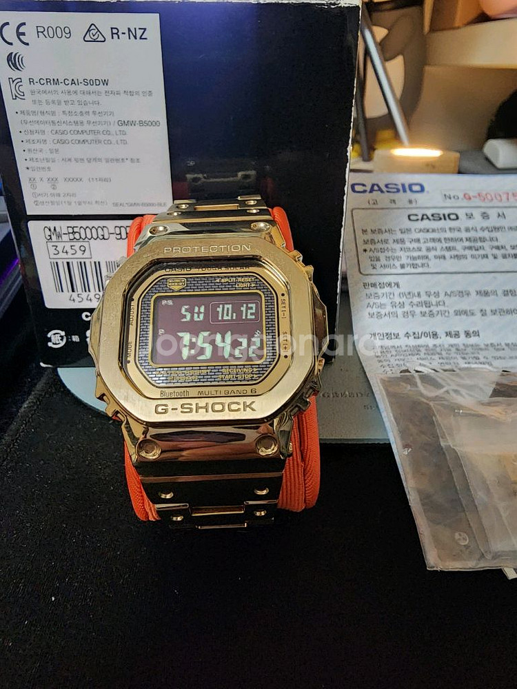 지샥 GMW-B5000GD-9DR 풀메탈 골드 시계입니다 생활 기스 거의없고, 전체적으로 깨끗합니다(사진 참고) - 풀메탈이라 견고하고 고급스러워요 - 블루투스 기능으로 스마트폰과 연동 가능 - 충격에 강해서 안심하고 사용 가능 박스, 여분코, 보증서 포함입니다
