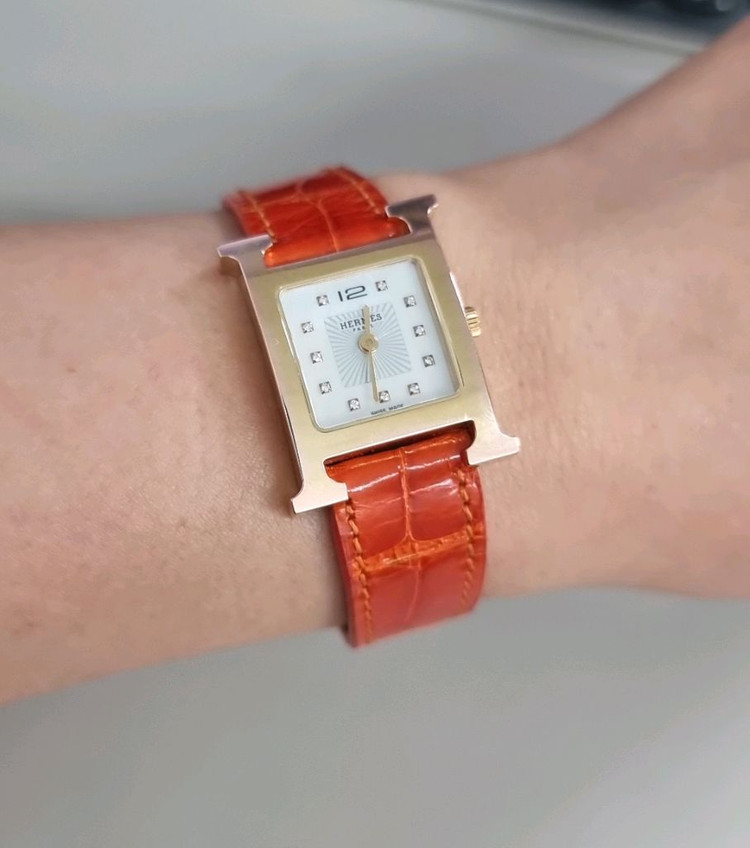 엔스트랩스에서 구입한 에르메스 H아워 스몰 호환 시계줄입니다. 스트랩 길이(사이즈)는 L입니다. 이집에서 시계줄만 5개 샀는데 오렌지색은 몇번 착용하고 보관만 하고 있어서 정리합니다^^ 포인트로 화사하니 너무 이쁩니다. 구매시 받은 보증서 같이 보내드릴께요. 혹시 문제 생기시면 A/S가능해요. 택포가격입니다^^
