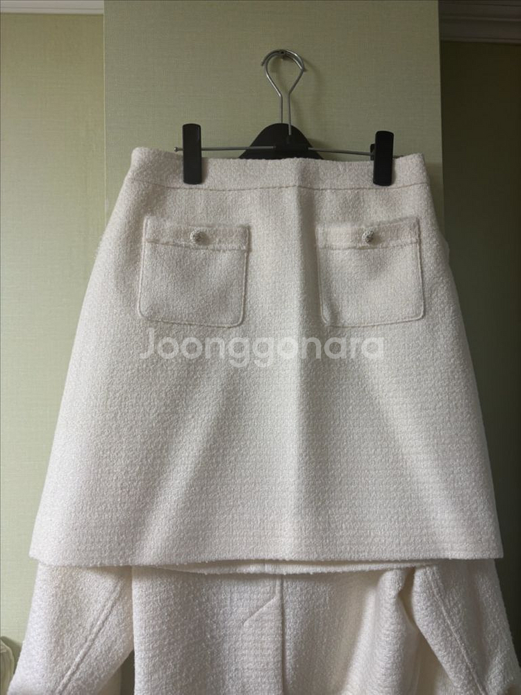 셋업으로 사이즈는 55 사이즈 입니다. 자켓은 실착횟수 3회 정도로 새상품에 가깝고 스커트는 새상품이에요. 상품 정보는 링크 확인해주세요: https://naver.me/xfYzApHC 셋업이라 부피가 있어서 택배만 가능합니다. 교환 환불X (질문없이 바로 구매 시 에누리 가능)