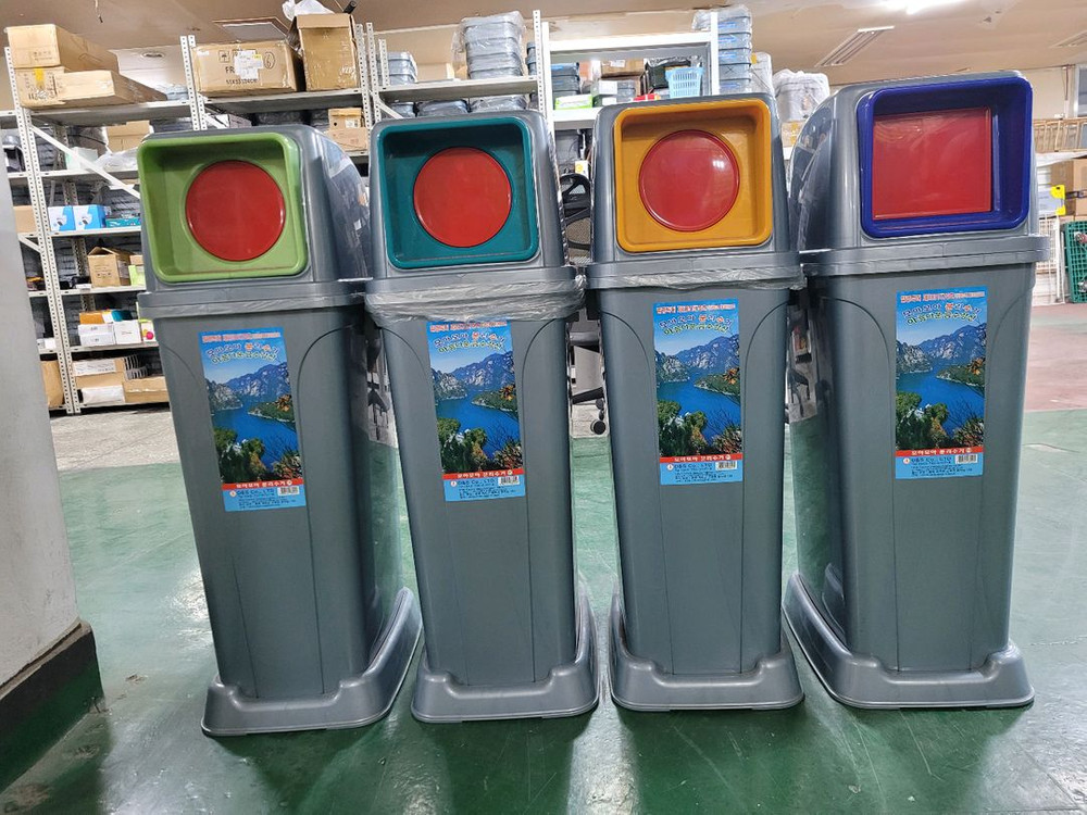 분리수거통 110L 4종세트 판매합니다 - 4개 1세트 - 사이즈: 450*300*940cm - 뚜껑 투입구가 자연반동으로 닫혀 냄새가 안 나요 - 받침대가 있어서 넘어지지 않아요 - 특수 합성수지로 제작되어 3mm 두께로 견고해요 - 판매가격-40,000원(4개1세트) 160세트 있습니다 낱개640개 일괄5,000,000원