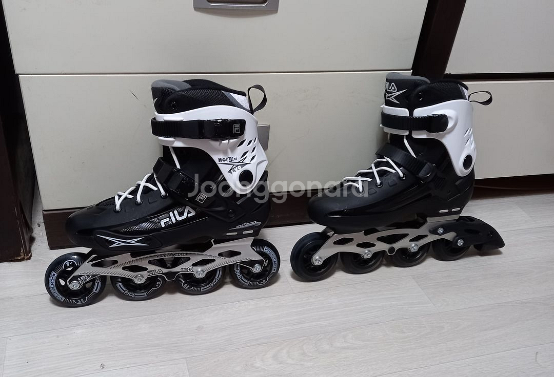 인라인 스케이트 성인용(휠라, 하운디니 에보, 260mm) 판매합니다. 혼자 연습해 보려고 5회 타본게 전부고 이후 보관만 하고 있습니다. 상태 거의 새거고 사은품 가방, 육각렌치, 샤프트 여분 한개 구입할 당시 그대로 포장해서 보내드립니다. 휠 84mm 익숙해 지시면 100mm 도 부착 가능합니다. 사이즈는 제가 마른편이고 평소 신발 260mm 신고 발볼이 좀 작은편이라 앞 부분은 약간 넉넉하게 들어 갑니다. 발 사이즈 관련 문의주시면 답변 드려요. 멀지 않은 곳은 직거래 가능하고 가격은 택포입니다. 손목보호대, 무릎보호대도 같이 드려요.