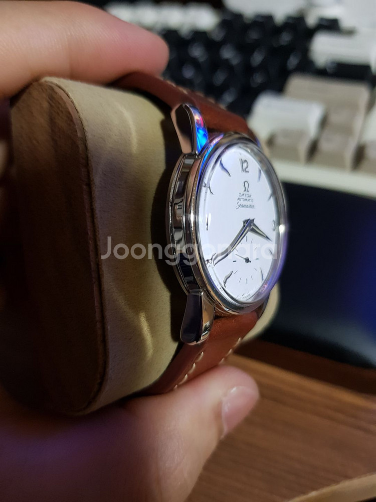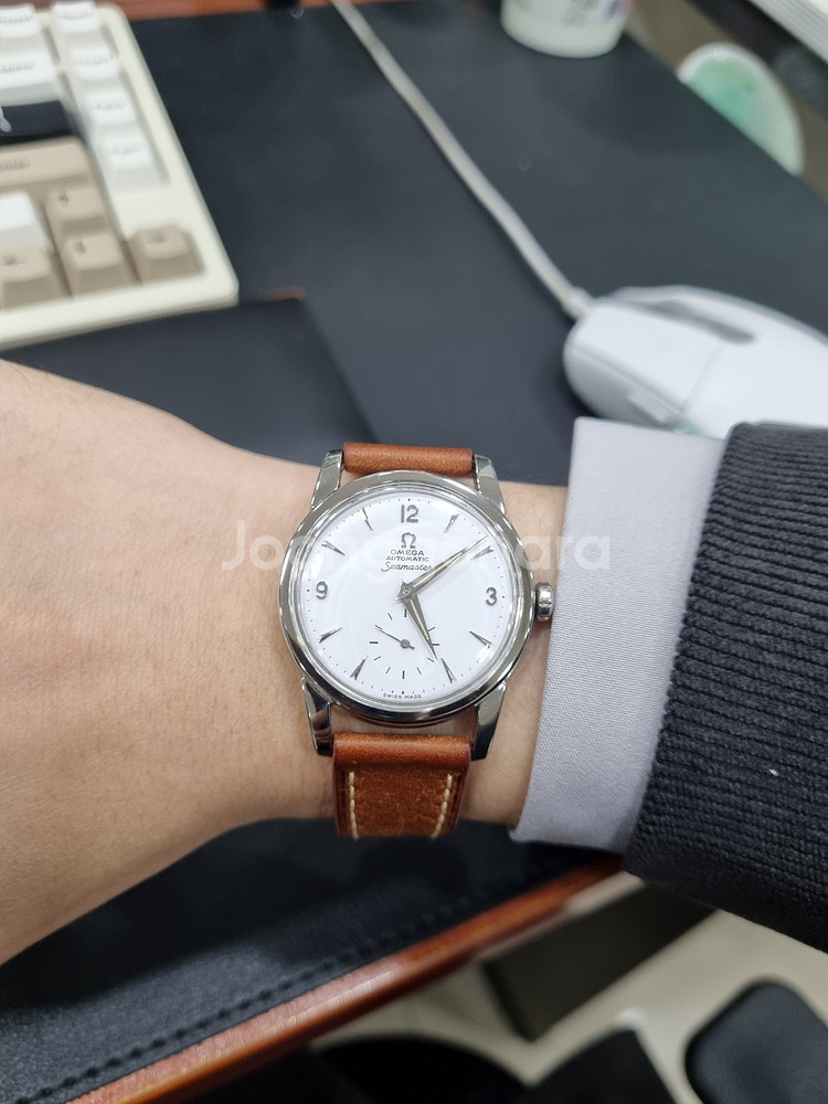 1948년도 쯤에 나온 오메가 씨마스터 1세대 모델입니다 오래된 시계이니 만큼 요즘 시계만큼의 오차가 없길 기대하긴 어려우나 일 오차 30초 ~ 1분 사이로 빈티지 시계 특성을 고려했을 때 만족할 만한 수치를 자랑하며, 시대상의 아름다운 디자인과 폴리싱을 통해 제 손목을 오랜 기간 빛내준 유니크한 모델이었습니다. (그런 만큼 과거 워홀 유저 분들에게 극찬을 받았던 시계이기도 합니다) 시계 스펙으로는 럭투럭 34mm, 러그 18mm이며 작은 시계를 좋아하시거나 손목이 얇으신 분들에게 안성맞춤일 겁니다. 저 역시 시계를 좋아하는 한 사람으로서 오랜 기간 소장하고 싶었으나 그럴 수 없는 상황에 놓인만큼 좋은 분께 양도하길 원하고 있으며, 위 사진에 나온 검정 악어가죽 스트랩은 서비스입니다. 직거래 지역은 서울 강동구 길동이며, 맛있는 커피 한잔 대접해 드리겠습니다