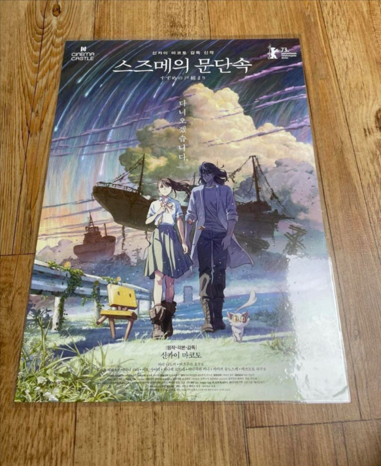 1. 베이징포스터 한정판 18000 2. 1주차 오리지널포스터+스즈메랑의자 스티커 12500 3. A4 포스터컬렉션 13000 (3,4번) 4. 스즈메의문단속 a5 pet 14000(5번) 5. A3 pet 어서와요 포스터 18000(6번) 6. 2주차 스즈메랑의자 동화책 8000(7번) 3개이상 일괄구매시 6번 동화책 무료로 드립니다. 씨유 알뜰택배 2200 or 일반택배 4000 + 포스터전용택배박스 1200 추가하여 보내드립니다. 최대한 구겨지지않게 고정시켜 전용박스에 펼쳐 보내드립니다. 홀더에 넣어와서 상태좋은편이나 종이굿즈라 공정하자 까짐 기스 손자국약구김 모서리약구김 등에 예민하신분은 피해주세요. 구매 후에는 무슨 이유에서든 환불불가 하니 신중히 구매해주세요.