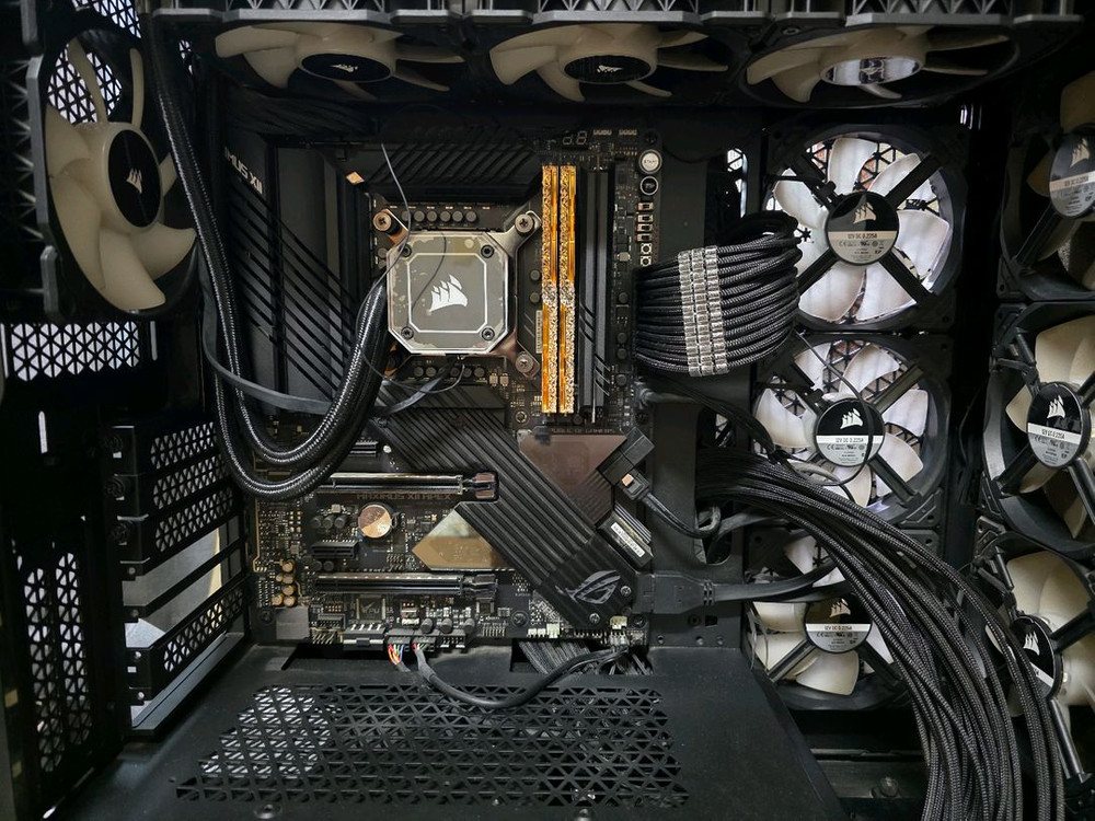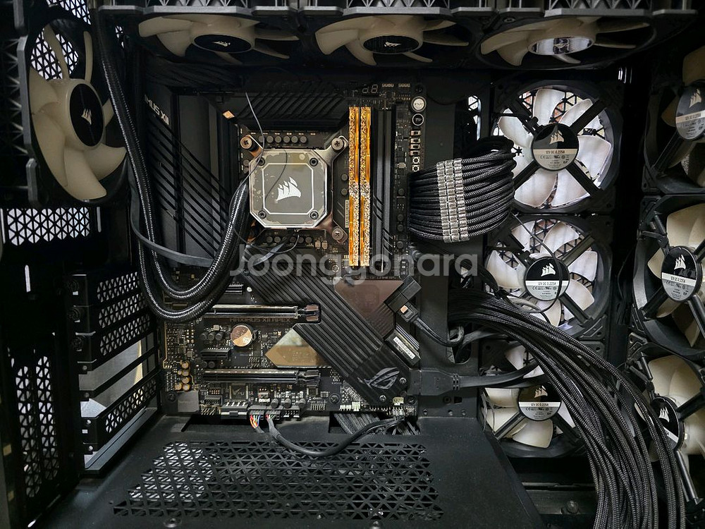 그래픽카드 제외된 반본체 구성입니다. 1. cpu : 인텔 10900kf 2. 쿨러 : 커세어 iCUE H150i ELITE CAPELLIX 블랙 3. 메인보드 : 아수스 로그 막시무스 apex z490 4. 램 : 지스킬 트라이던트 z 로얄 엘리트 골드 4000 cl16 32GB 5. ssd : sk 하이닉스 플레티넘 p31 2테라 6. 파워 : 커세어 HX1200 80PLUS 플래티넘 7. 케이스 : 커세어 5000D AIR FLOW 블랙 - 기타 - 팬 : 커세어 ML120 RGB Replacement 7개 튜닝품 : 커세어 호환용 맥스파인더 슬리빙 케이블 베이직 세트, 커맨더프로, 라이트닝노드프로 구매시기는 21~22년쯤입니다. 개인사용자이며 주로 영상편집, 그래픽 작업용으로 사용했구요. 롤이나 배그같은 게임도 렉없이 잘 됩니다. 각개 안하고 일괄로만 판매합니다. 튜닝품인 팬+케이블+커맨드프로+노드프로는 미포함 가격으로 그냥 드립니다. 하자없고, 교환 네고 문의 사양하며 서울 중랑구 사가정역 근처에서 직거래만 합니다. 케이스가 빅타워같은 미들타워라 크고 무거워서 자차로 와주셔야 할 것 같습니다.