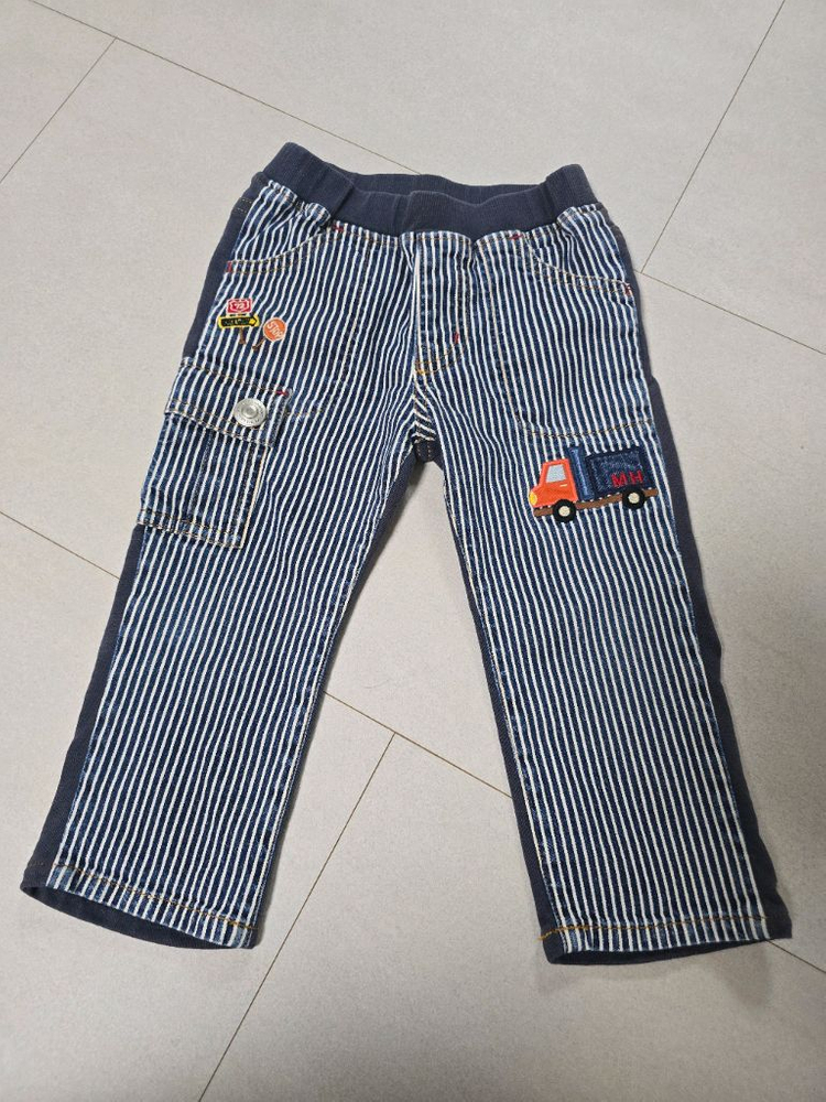 미키하우스 바지 90 스트라이프 패턴에 귀여운 트럭 아플리케가 포인트예요 깨끗하게 관리했습니다. 상태 좋습니다😁