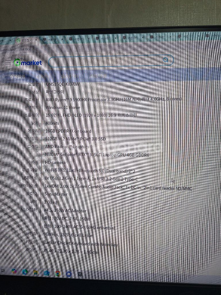 상품명: 아수스 젠북 프로 15 OLED UM535QE 구매시기 2023년 3월경 사용기간 2개월 하자: 없음 제품상태: 준 새상품급 스펙 AMD Ryzen 9 5900HX NVIDIA GeForce RTX 3050Ti GPU 16GB RAM 512GB SSD 15.6인치 FHD OLED 터치스크린 Windows 11 Home (정품) 아수스본사 재생시간확인 재생시간 2개월넘을시 200%배상 전 회사 영상편집용으로 구매하였는데 구매와동시에 거의 바로 이직.. 영상편집할일이 없어 묵혀두었다가 판매합니다. 업자아니고 개인입니다. 전자기기 직거래희망합니다~!