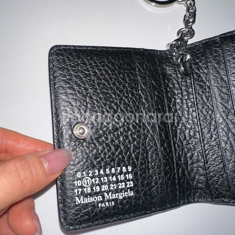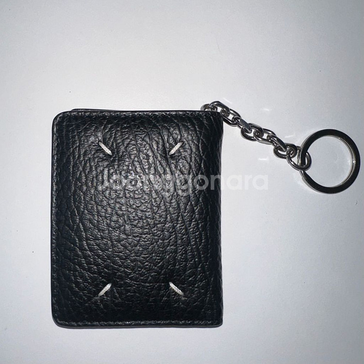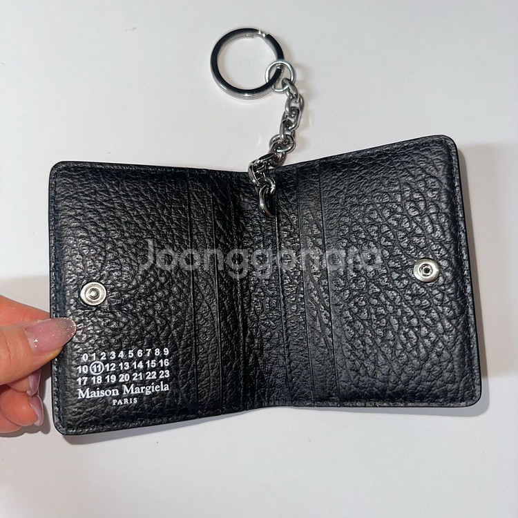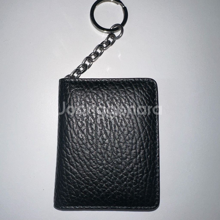 메종 마르지엘라 키링 카드지갑 블랙 색상입니다 사용감이 거의 없고 깨끗한 상태를 유지하고 있어요 메종 마르지엘라의 시그니처인 4개의 스티치 디자인이 돋보이며, 키링이 달려있어 실용적이에요 카드 수납 공간과 지폐 수납 공간이 있어 편리하게 사용할 수 있습니다