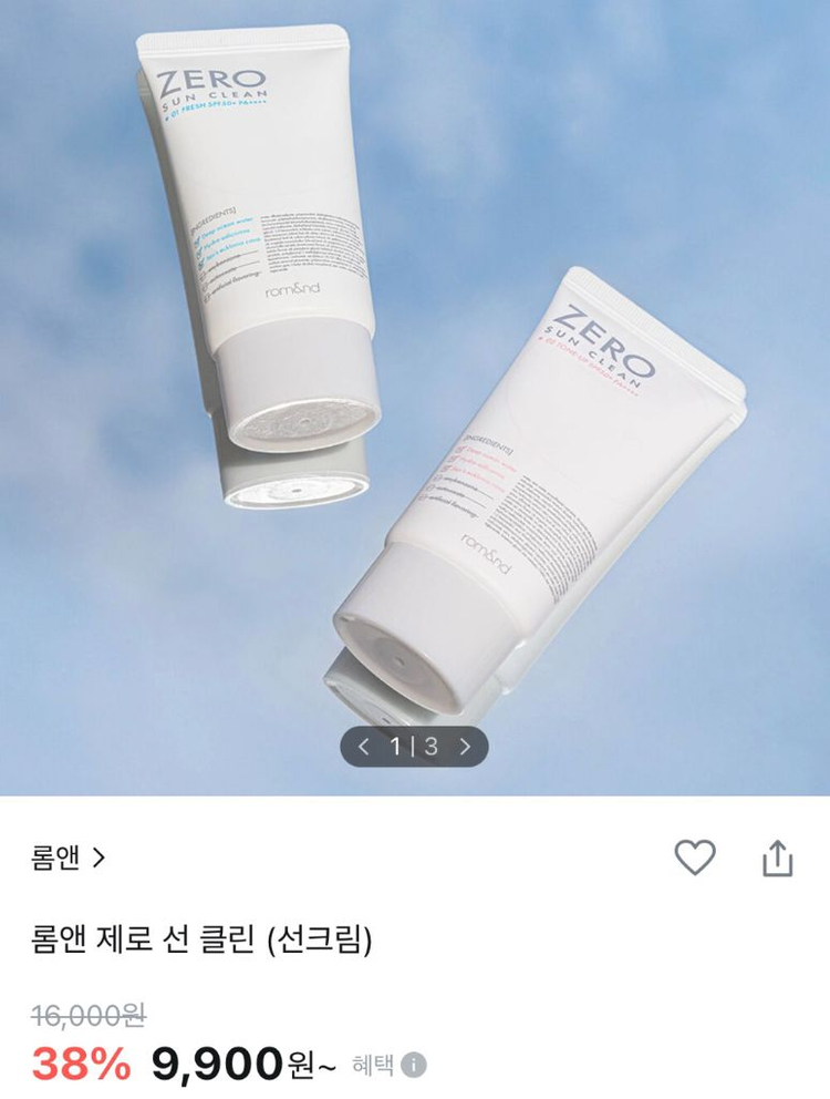 [미사용] 롬앤 제로 선 클린 (선크림) 01 프레쉬