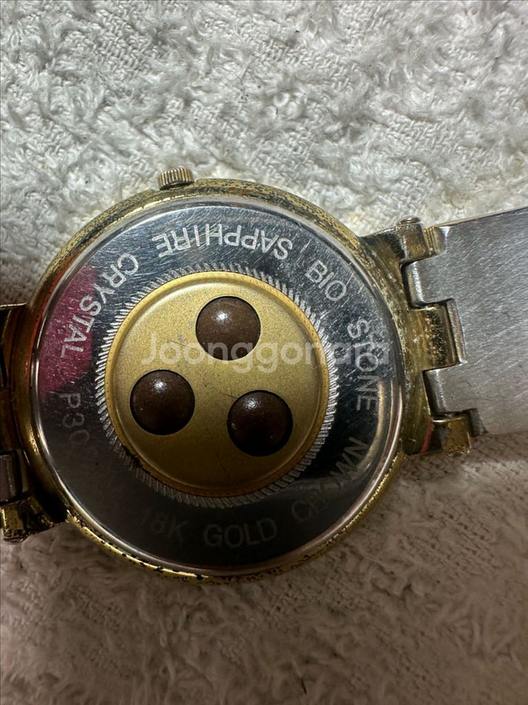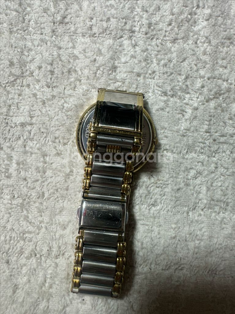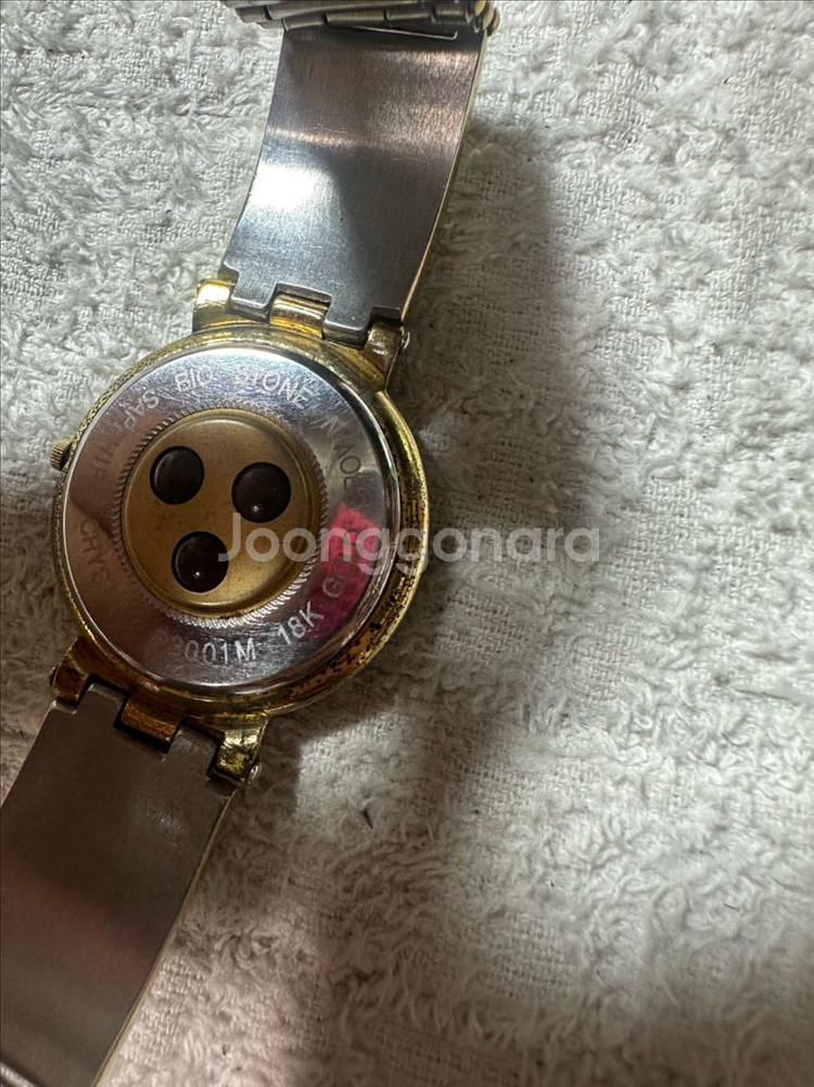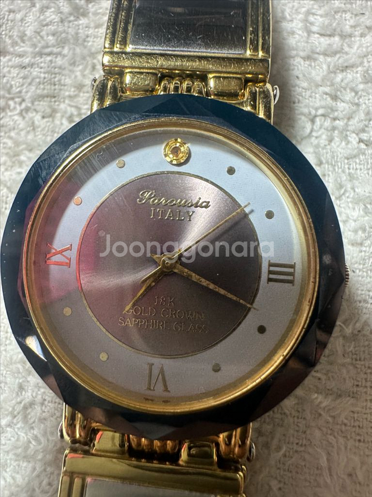 Parousia ITALY 18K 골드 크라운 & 사파이어 글라스 빈티지 시계 판매합니다 🕰️ 브랜드 & 모델: Parousia ITALY (파루시아 이탈리아) 빈티지 쿼츠 시계 📏 사이즈: • 케이스 가로: 약 34.1mm (용두 제외) ✨ 특징: • 순수한 품격이 깃든 디자인: 깊은 네이비 또는 블랙 베젤과 우아한 투톤 다이얼의 조화가 돋보이며, 손목 위에서 시선을 사로잡는 아름다운 자태를 자랑합니다. • 고급 소재의 가치: 용두에 18K GOLD CROWN이 적용되었으며, 시계 글라스는 긁힘에 강한 SAPPHIRE GLASS를 사용하여 변치 않는 아름다움을 오랫동안 간직할 수 있습니다. • 유니크한 디테일: 후면에 BIO STONE이 적용되어 특별한 매력을 더하며, 빈티지 워치 특유의 희소성을 느낄 수 있습니다. • 세월을 담은 브레이슬릿: 골드/실버 콤비 메탈 밴드가 빈티지하면서도 세련된 분위기를 연출하여 어떤 스타일에도 고급스럽게 어울립니다. 🌟 시계 상태: 빈티지 제품임에도 불구하고 전체적으로 매우 양호한 상태를 유지하고 있습니다. 바디와 브레이슬릿에 생활 스크래치 외에는 특별한 손상 없이 깨끗합니다. ✔️ 배터리 교환 및 검수 완료: 정식 검수 과정을 거쳐 배터리 교환 및 모든 기능 점검을 마쳤습니다. 안심하고 바로 착용하실 수 있습니다. 🎁 구성: 시계 단품 💰 판매 가격: 13만원 ✉️ 문의: 궁금한 점이 있으시면 언제든지 메시지 주세요. #파루시아시계 #빈티지시계 #여성시계 #ParousiaITALY #18K골드크라운 #사파이어글라스