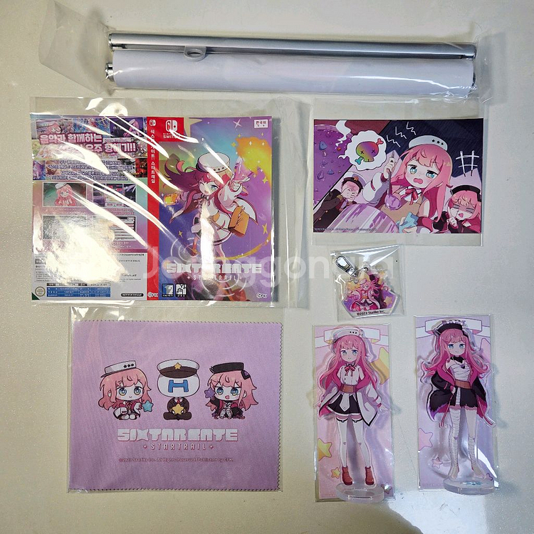 OST에 관심 있어서 샀지만 정작 게임은 잘 안하게 되어서 팝니다. 가격 협의 가능합니다. 일본판 한정판 구성에 텀블벅 펀딩 한국 전용 굿즈(한국어 타이틀 시트, 멀티클리너, 엽서 3장, 한국 전용 아크릴 시이&라미 아크릴 스탠드, 태피스트리, 키링)이 포함된 구성입니다. 라미 아크릴 스탠드 받침대에 보호막 약간 뜯어진 하자 있긴 한데(4번 사진) 아크릴 스탠드 본체가 가려서 잘 드러나지는 않습니다. 개봉여부는 OST CD, 아트북, 한국 전용 아크릴 스탠드만 개봉이고 게임 패키지 등 나머지 구성품은 미개봉입니다.