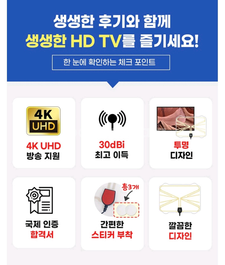 브리사 디지털 TV 안테나입니다 - Full HD/UHD 지원으로 선명한 화면을 즐길 수 있습니다 - 5m 케이블로 편리하게 설치 가능합니다 - USB형 증폭기가 포함되어 있습니다 - 30dBi 이득으로 수신 감도를 높였습니다