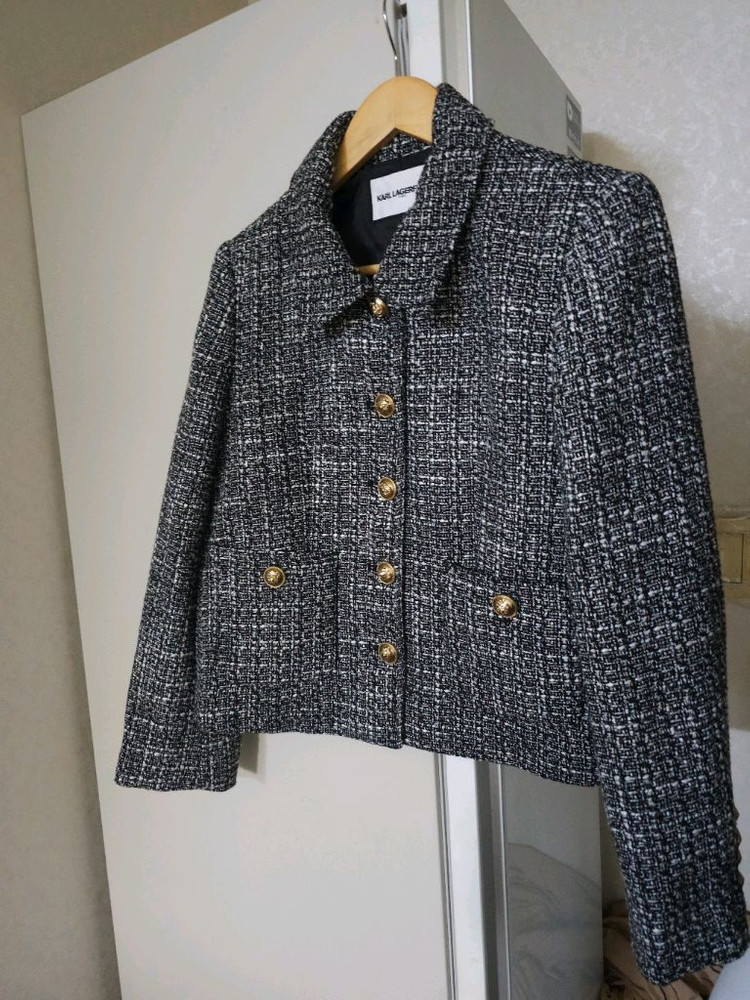 개인정보(거래정보)를 주고받는 행위는 사기에 노출될 수 있으므로 즉시 중고나라로 신고해 주세요칼 라거펠트 트위드 자켓입니다. 금장 버튼이 고급스러움을 더합니다. 클래식하면서도 세련됬어요. 사용감 거의 없습니다 55사이즈, 가슴반품 49cm 총장 55cm