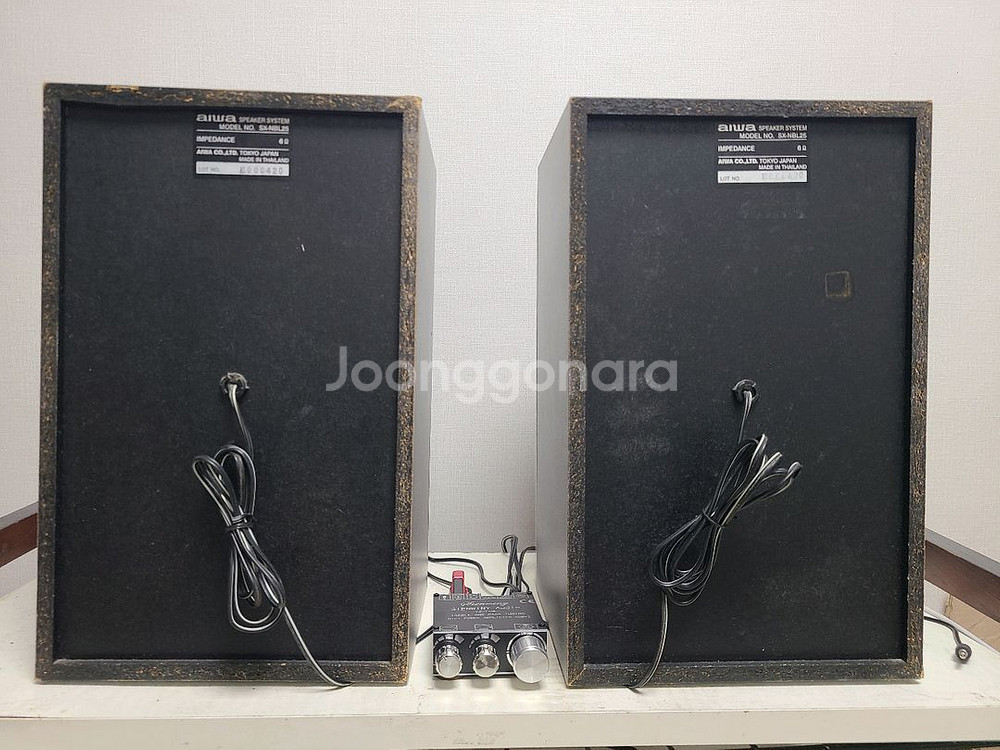 AIWA SX-NBL25 스피커 입니다. 블루투스, USB 및 AUX 지원합니다. 스피커당 40W 출력으로 양쪽 스피커(80W) 에서 울려주는 스테레오가 진국입니다. 외형은 그릴포함 전체적으로 비교적 깨끗하며 소리 들어 보시면 3way 베이스 리플렉스 스피커 시스템 에서 울려주는 음향에 만족 하실것 입니다. - 5번 사진의 소형앰프에 패시브스피커를 연결 - 7번 사진의 전원공급기를 앰프에 연결 - 앰프에는 블루투스, USB, AUX단이 있음 - 블루투스는 USB나 AUX단이 연결되지 않으면 가동. - USB단은 USB 음악재생. - AUX단은 휴대폰이나 PC AUX에 연결 - USB나 AUX 케이블 연결 제거시 BT연결, USB나 AUX케이블 연결시 BT연결 끊김. - 볼륨버턴을 길게 누르면 전원 ON/OFF - 볼륨버턴을 살짝 누르면 일시정지/진행 블루투스 앰프보드사양 : 50W+50W 블루투스버전 : 5.0 전송거리 : 15m 적용스피커 : 10W-100W/4옴-16옴 AIWA 북쉘프 스피커(SX-NLB25) • 3WAY 베이스 리플렉스 스피커 시스템 • 우퍼 : 직경 14cm 콘형 • 트위터 : 6cm 콘형 • 슈퍼트위터 : 2cm 세라믹 • 공칭 임피던스 : 6옴 • 정격입력 40W/CH, 80W(40W+40W) • 크기(W/H/D 202/324/219 mm) • 중량 : 약 3.8 kg/ea 스피커외형은 비교적 깨끗하며 좌우 발란스 잘 맞으며 아이와답게 소리 좋습니다. 구성 : AIWA스피커, 미니앰프, 전원공급기, AUX케이블.