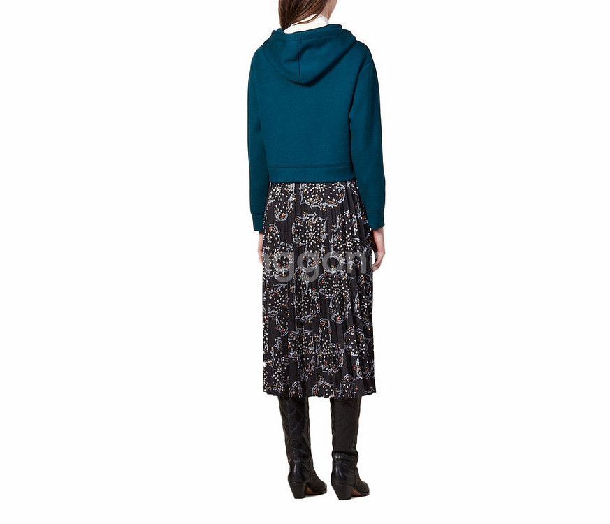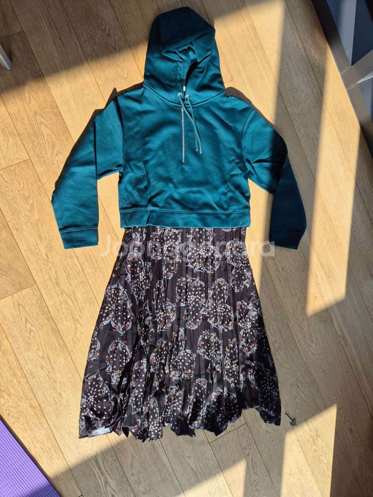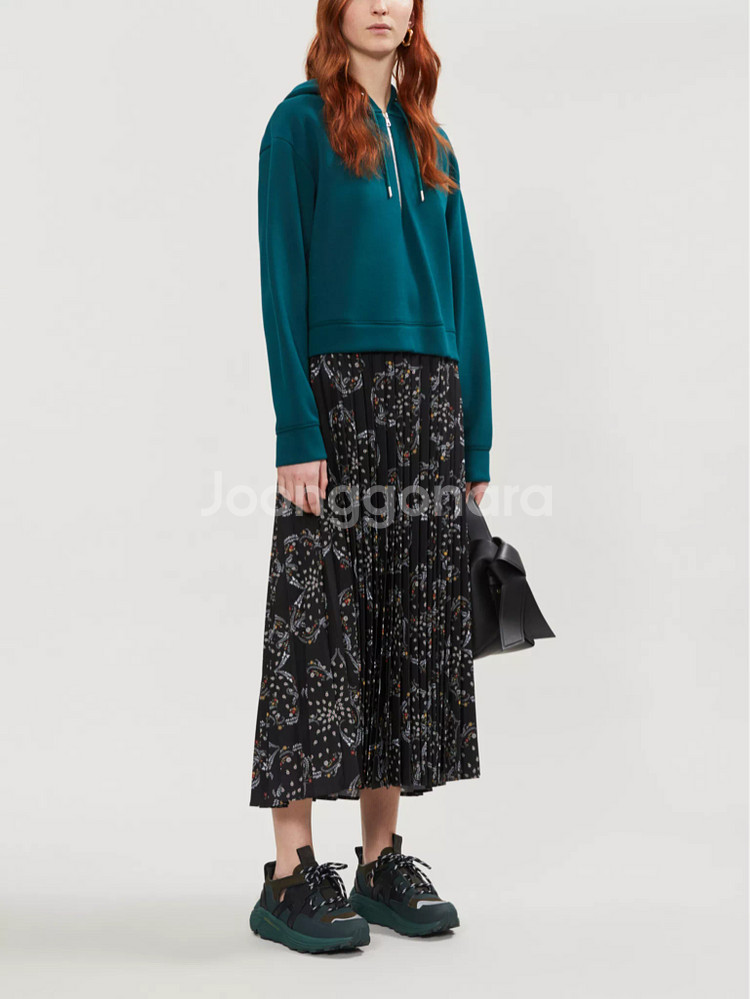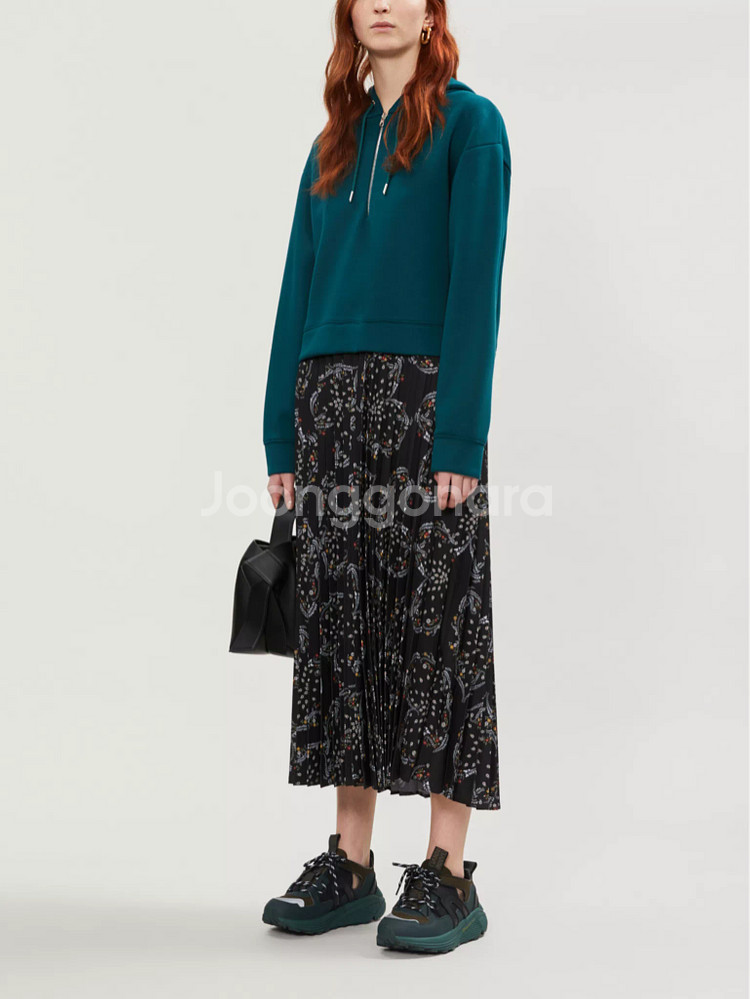 (새상품) 산드로 저지 플리츠 스커트 원피스 38사이즈 끈달린 청록색 컬러의 후드 저지 상의와 페이즐리 플로럴 프린트가 가득한 롱 플리츠 주름 스커트인 하의가 너무 잘 어울리는 원피스에요 모델처럼 부츠에 입어도 되고 조금 더 날이 따뜻해지면 스타킹에 스니커즈도 너무 잘어울린답니다. 모델은 177cm에 36사이즈 착용했고 총 길이는 125.cm정도라고 참고하시면 될 듯 해요 원단 : 비스코스 100 % / 보조 원단 : 폴리 에스터 100 % 택있는 새상품이라 선물도 가능해요