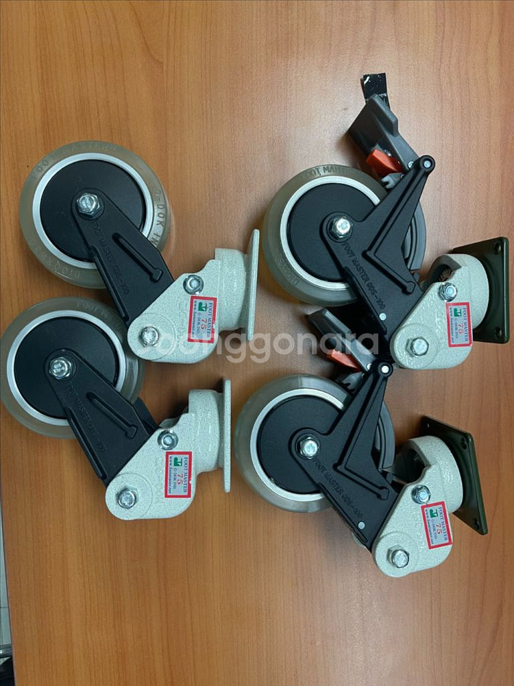 지덕산업 충격흡수 캐스터 바퀴 판매합니다 (GDS 100 BRF, ARG 모델) 올해 구밉후, 조립만 해보고 분리후 보관만 해온 완전 새제품입니다. 고정브레이크 있는 회전형 모델 2개 고정형 풋마스터 모델 2개 총 4개 일괄 10만원에 판매합니다. 세부 사양은 모델검색 바랍니다. 천안 인근 직거래, 기타 택배 가능합니다.
