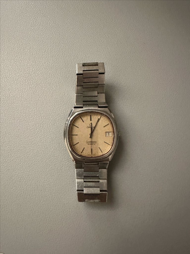 • 브랜드: OMEGA • 라인: Constellation • 제작 연도 추정: 1970~1980년대 • 케이스/브레이슬릿: 스테인리스스틸 • 무브먼트: 오토매틱(자동) • 디자인: C-라인, 백케이스에 컨스텔레이션 엠블럼 • 데이트 기능 있음 • 모델 넘버 각인: ? 시계만 단품이예요