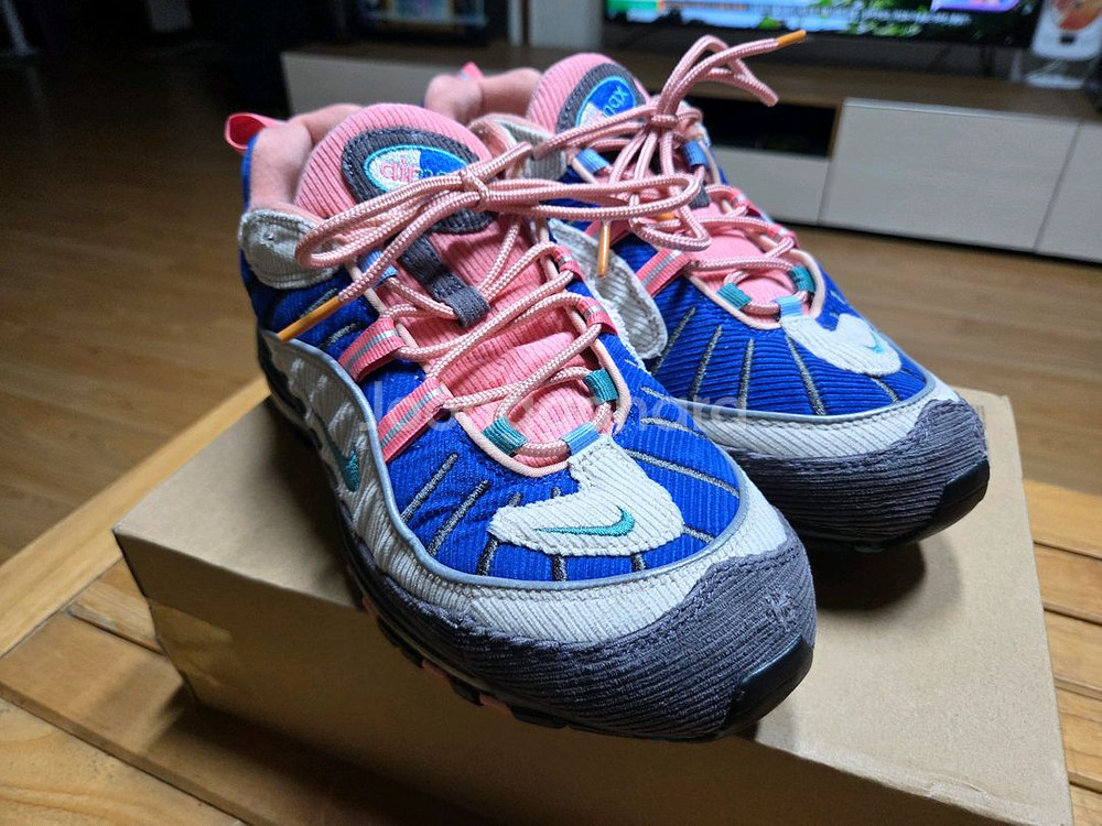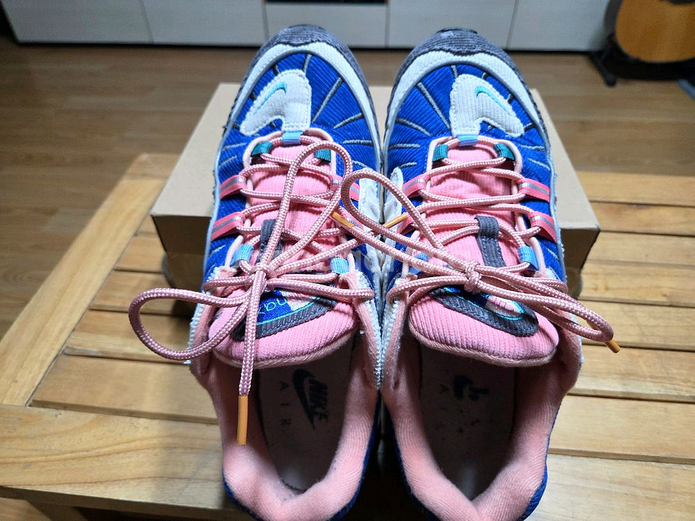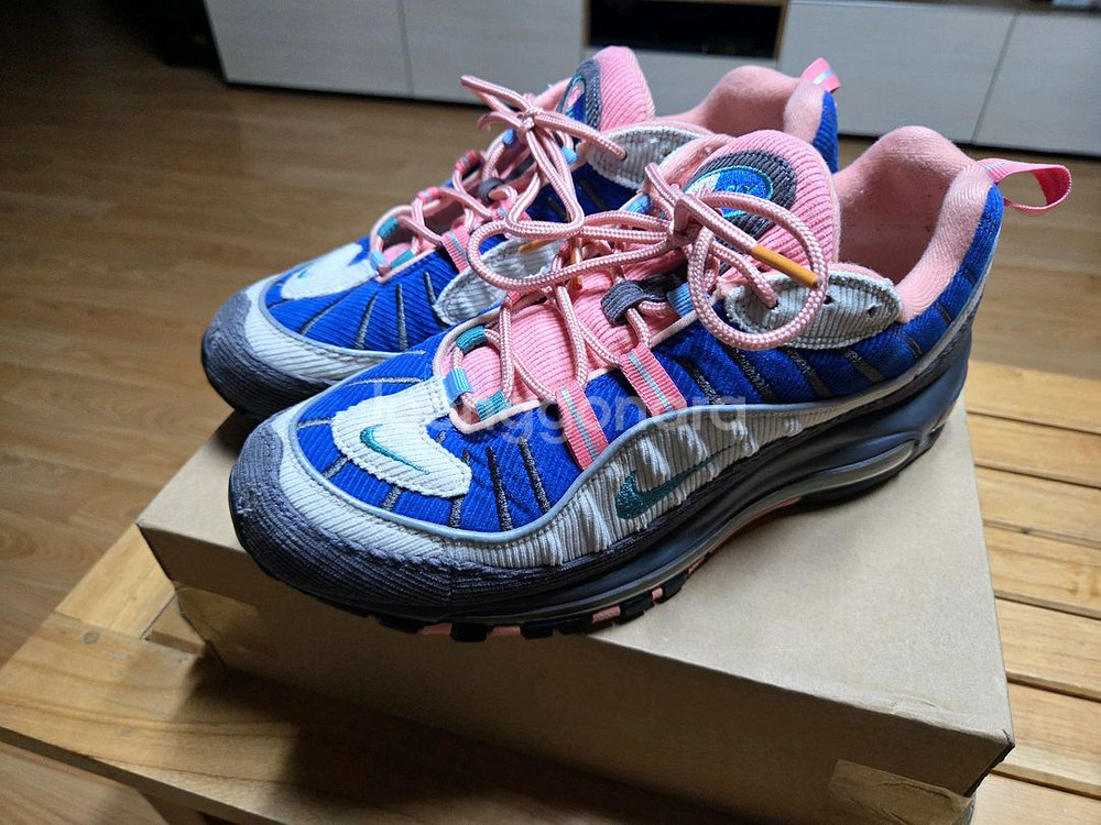 나이키 에어맥스98 코로듀이 데저트 샌드 팝니다 사이즈 275. 박스없음 사용감 있습니다. 앞쪽 두 군데 긁힘 스크래치 있습니다 사진참고 에어정상 바닥면 상태 최상 교환 X 택배 가능/ 무료 배송입니다 반값택배 가능 구입생각 있으시면 연락주세요