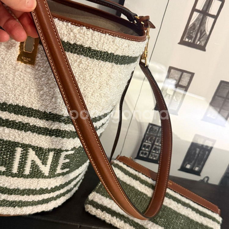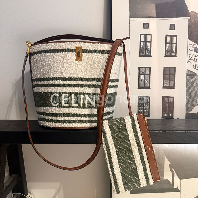 셀린느 버킷백입니다. 당연히 정품이구요 사진에 보시듯이 상태가 아주 좋습니다. 같이 달린 파우치는 사용을 하지않아 새거나 마찬가지구요 다섯손가락안으로 들어보고 보관만하고 있어요 뒷면 자세히 봐야 알수 있을정도로 약한 오염있는데 버클 비닐도 떼지않은 상태로 그 외에는 깨끗해요