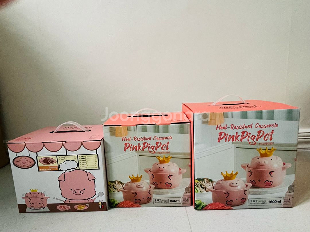 귀여운 핑크돼지냄비 3종 세트 새상품 1600ml (아빠돼지) 1000ml (엄마돼지) 600ml(아기돼지) 있어요 - 가스레인지, 핫플레이트, 하이라이트, 전자레인지, 오븐, 냉장, 식기세척기 등 다양한 열원에서 사용 가능해서 편리해요 - 세제 흡수 걱정 없이 위생적으로 관리할 수 있고, 높은 열전도율로 음식 맛을 오랫동안 유지시켜 줍니다 - 원적외선 방출로 음식의 풍미를 깊게 해주는 장점도 있어요 아빠돼지 - 3만3천 엄마돼지 - 3만 아기돼지 -2만5천 개별 또는 일괄 구매 가능합니다 배송비는 착불 입니다