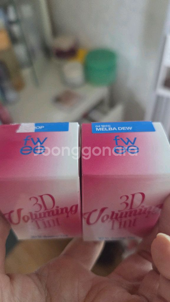 fwee 3D 볼류밍 틴트 각 1회발색 각 1만원 두개다 구입시 17000원 - Fresh Drop Moment, 색상은 멜바듀 - Juicy Drop Moment, 색상은 피치팝 유통기한은 각각 28년 7월 15일, 28년 7월 10일까지입니다