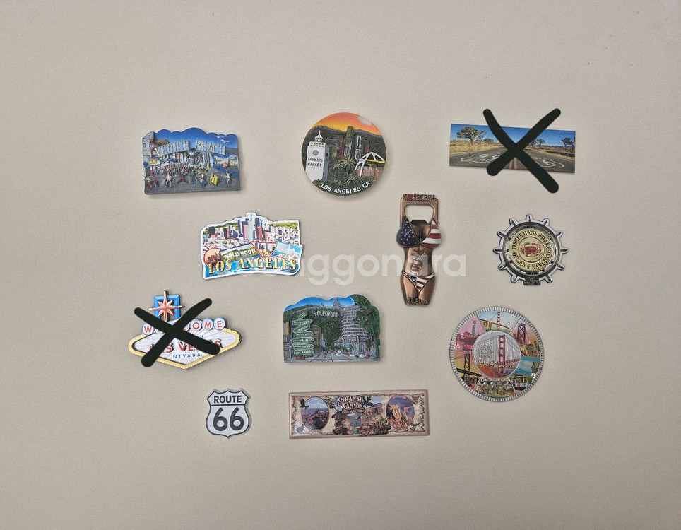 개당 3,500원에 판매하며 왼쪽 하단의 흰색 ROUTE 66작은 자석은 2,000원 입니다 판매완료 된 제품은 엑스표시 예정이니 별도 표시없으면 판매중인 제품입니다! 이런 제품 특성상 데미지나 색까짐 등이 있으니 감안해서 구매해 주세요:)