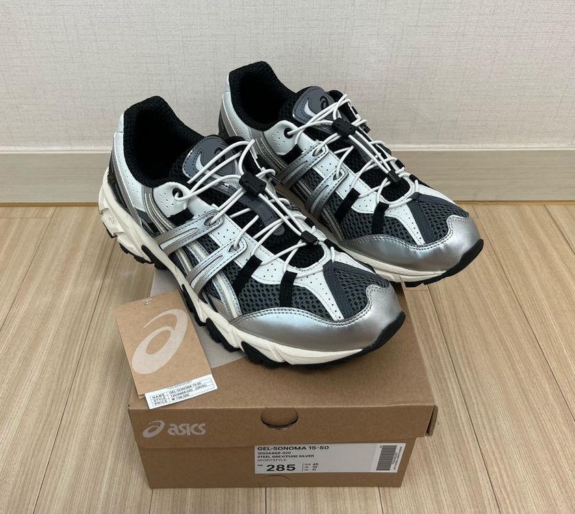 아식스 젤소노마15-50 스틸 그레이 퓨어실버 1203a668-020 새제품급 asics gel sonoma 15-50 steel grey pure silver 1203a668 020 아식스 공홈에서 구매한 아식스 정품입니다. 실착 1회로 새제품급 상태입니다. 사진은 올리기 직전에 찍은 것이고 사진과 동일한 상태로 보관하고 있습니다. 사이즈는 285mm입니다. 정가는 139,000원입니다. 구성품(구입당시 아식스 정품 박스, 신발안 종이뭉치, 제품텍) 사진 그대로 모두 보내드립니다. 겉에 일반박스로 이중포장해서 보내드립니다. 택포 85,000원입니다.