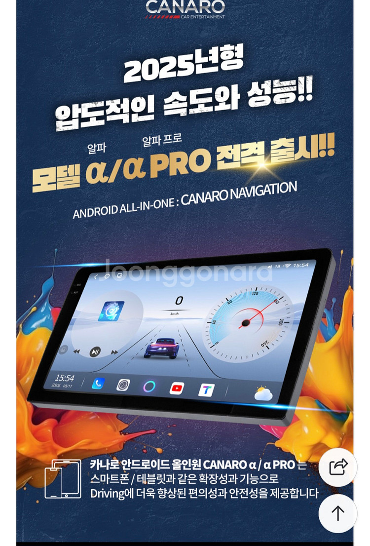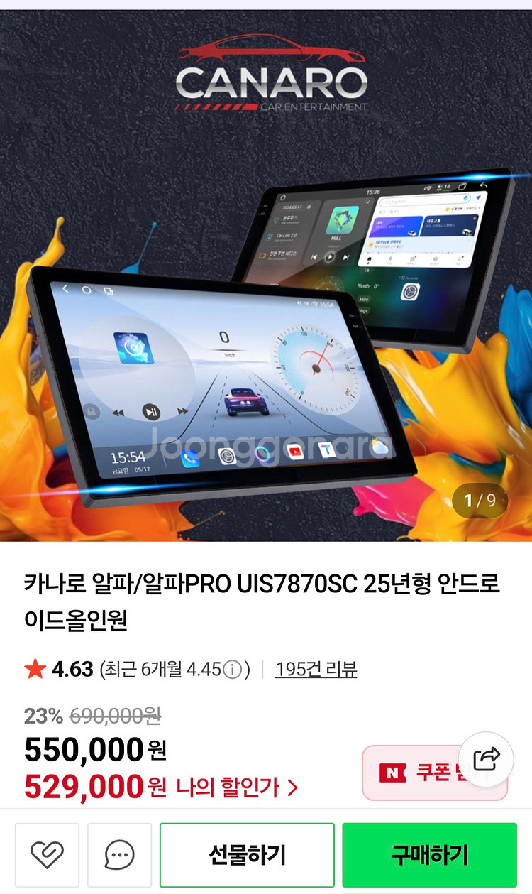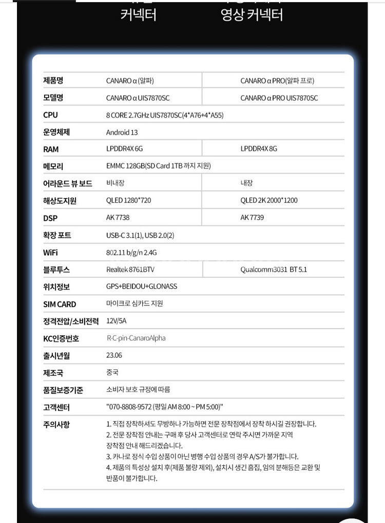 카나로 알파 9인치 안드로이드 올인원 25년 4월 구입 상태 A급 SM7 에서 사용 배선, 캔버스 포함 자세한 스펙은 네이버 스토어 카나로 알파 검색 가능