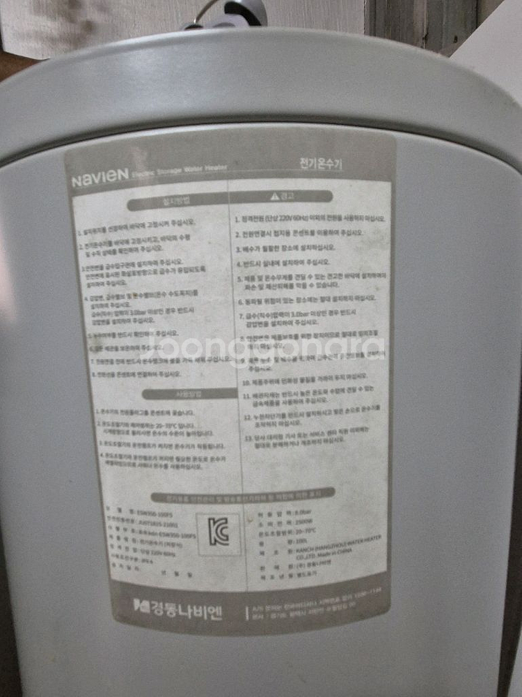 나비엔 전기 온수기 100L 모델 ESW350-100FS입니다 -3년 사용 - 정격전압: 220V, 60Hz, 2600W 스테인레스재질입니다 넉넉한 용량으로 온수를 편리하게 사용할 수 있습니다 순간온수기보다 따듯한 물 빨리 잘 나옵니다 농막 미용실 주택 기타 쓰기 좋습니다 해체되어있습니다