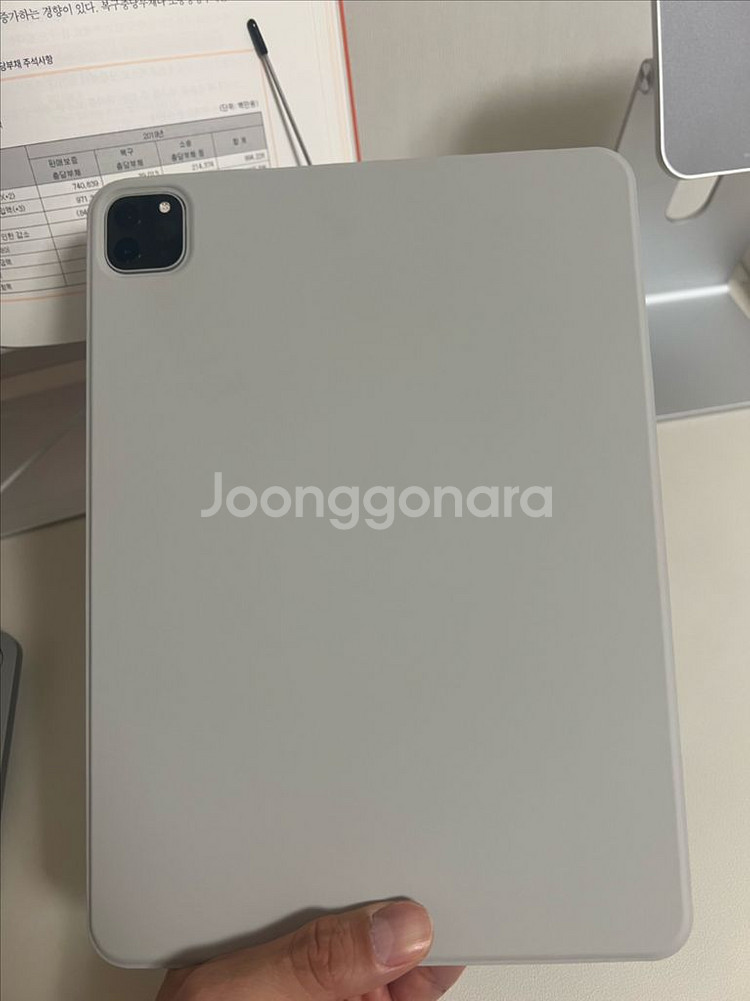아이패드 프로 11인치 M2 칩 실버 색상입니다 책상 거치대에서만 사용해서 기스나 액정손상 없습니다. - 배터리 최대 용량 91%, 사이클 88회입니다 - 풀박스 ( 충전기 사용 안함) - 애플 펜슬 2 포함(박스있음) - Elago 아이패드 마그네틱 스탠드 호환 케이스 같이 드립니다 ( 완전 새거) 현재 esr종이질감 필름 붙어 있고, 필요하시면 강화필름1장 종이질감 필름 1장 여분도 드립니다. 군자역 or 답십리역에서 거래 가능합니다.