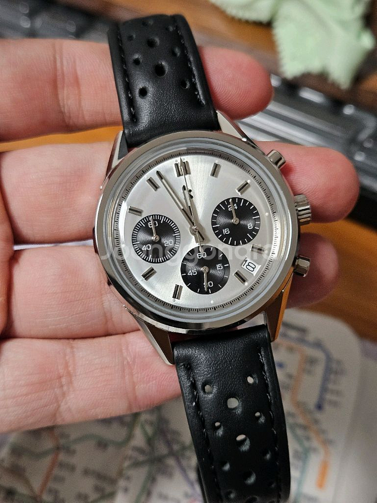나모키 커스텀 시계 판매합니다. 정확히는 세이코 상표권과는 전혀 관련이 없고 나모키라는 시계 커스텀 파츠 사이트에 있는 부품 들로만 제작한 시계입니다. vk63 이 들어가는 크로노 팬더 디자인 시계입니다. 직접 만들었고 깨끗하게 만들었습니다. 거의 새제품 상태이고요. 직접 만드시면 30만원 훌쩍 넘어갑니다. 네고는 죄송합니다 Case Specifications: Case Diameter: 39mm Lug Width: 18mm Thickness: 8.1mm (Case only) Total thickness: 12.5mm (Case with crystal and caseback) Dial Size: Accepts 30.5-31.5mm Dials Dial Opening Size: 29.5mm Water Resistance: 10ATM