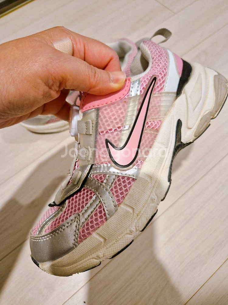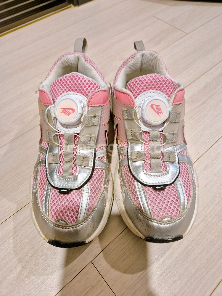 나이키 아동 운동화 210 핑크색과 은색이 조화롭게 디자인되었고, 다이얼로 조이는 방식이라 아이들이 신고 벗기 편해요 상태 좋습니다 씨유 반값택배 2천원 가능 합니다