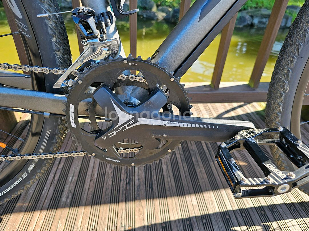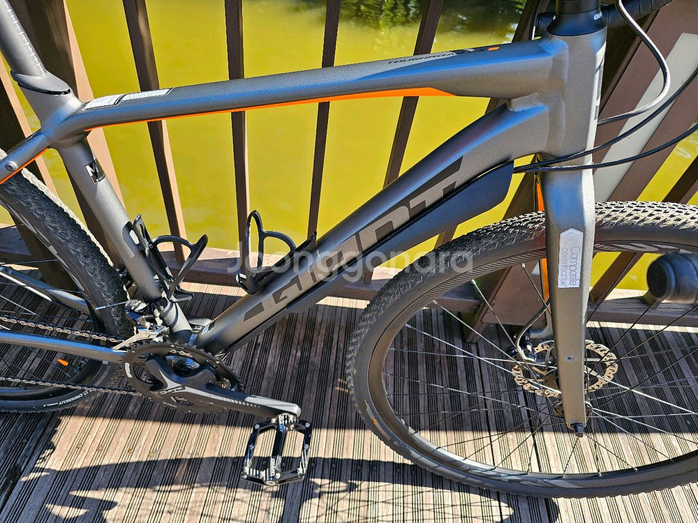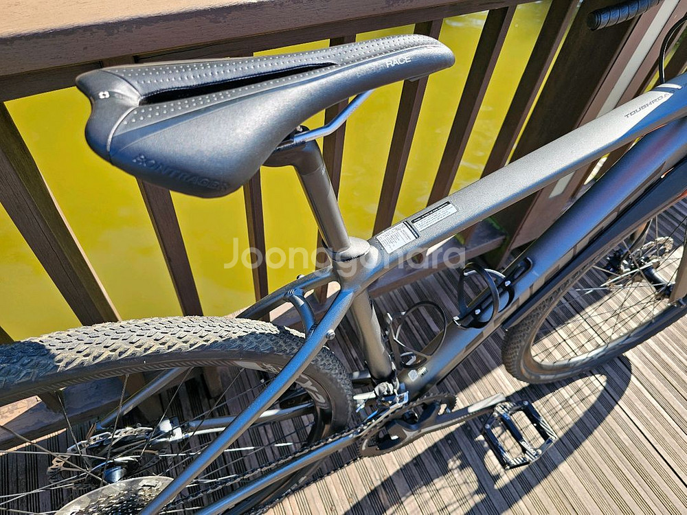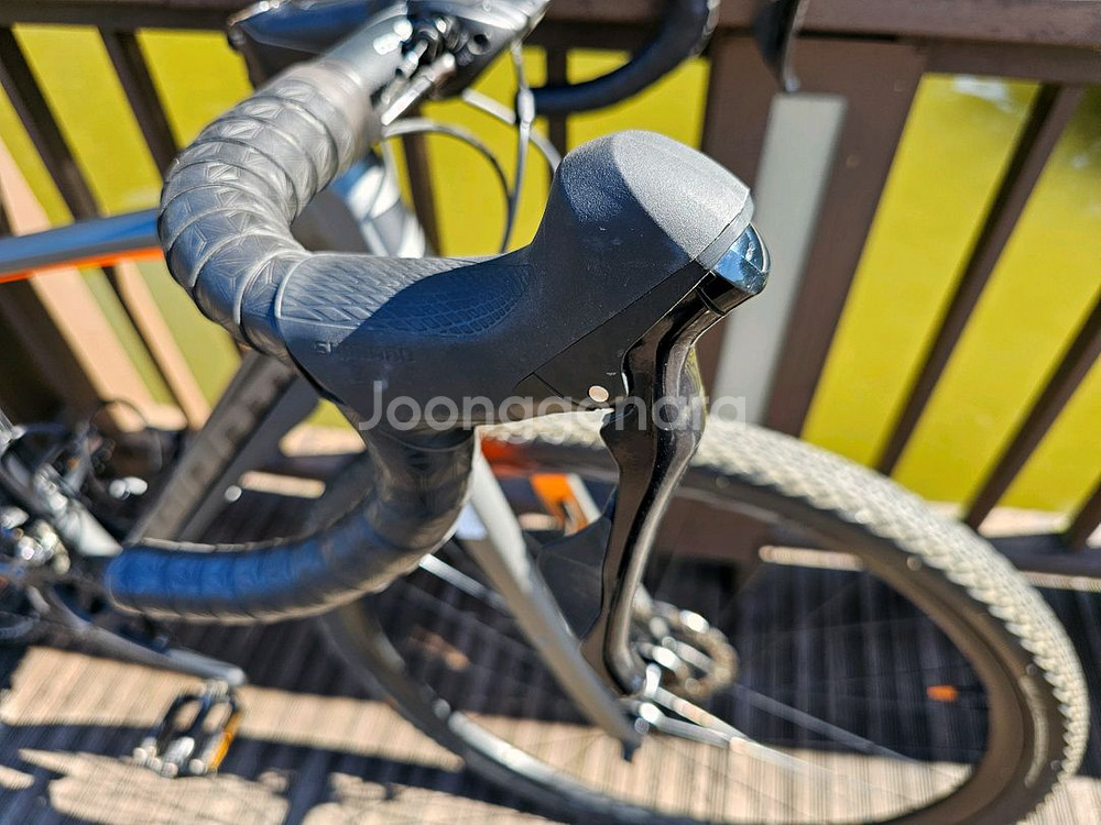 자이언트 터프로드 GX GE 판매합니다. 사이즈는 M이고 , 제조사 권장키는 168~178cm입니다. 2019년형으로 출시된 그래블/투어링 자전거입니다. 온·오프로드를 모두 주행할 수 있도록 설계된 모델로, 장거리 여행이나 모험적인 라이딩을 즐기는 라이더에게 적합합니다. 주요 특징 • 프레임: 가볍고 강성이 뛰어난 자이언트의 'ALUXX SLR' 알루미늄 소재 프레임이 사용되었습니다. • 구동계: 시마노 105 구동계가 장착되어 있어 부드럽고 정확한 변속이 가능합니다. • 브레이크: 뛰어난 제동력을 제공하는 유압식 디스크 브레이크가 적용되어, 거친 노면이나 궂은 날씨에도 안정적인 주행이 가능합니다. • 타이어: 700c 휠셋에 광폭 타이어(약 700x40mm)가 장착되어 있어, 일반 도로에서는 경쾌한 주행감을, 비포장도로에서는 우수한 접지력과 안정감을 제공합니다. • 기타: 장거리 라이딩의 편의를 위해 랙과 펜더를 장착할 수 있는 마운트가 있으며, 로드 진동을 흡수하는 D-Fuse 싯포스트가 적용되었습니다. • 2019년 출시 가격은 148만원입니다.