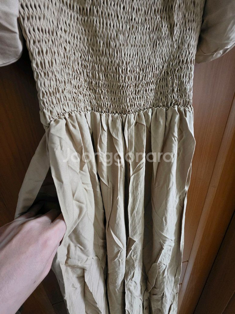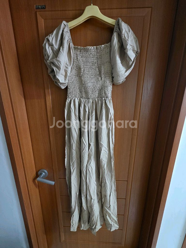 총장 130cm 새상품 스팀다리미가 고장이 나서 다리지 못해 쭈글한데 스팀한번 쐬주시면 넘 예쁜 옷이예요^^ 앞뒤 모양이 똑같구요.. 윗쪽은 스모그밴딩이라 잘 늘어나고 아래쪽은 통바지 느낌으로 폭이 큽니다.. 착용하면 넘 예쁜 점프슈트예요^^ 양쪽 주머니 있고 특히 벌룬소매-아방가르드한 느낌으로 넘 러블리해요.. 일반적인 브라운 색상입니다!! 77까지도 가능해여~~