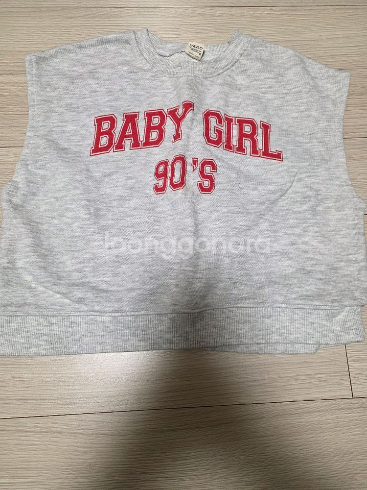 by mimi 브랜드의 조끼베스트 - 회색 바탕에 BABY GIRL 90's 프린팅이 있습니다 - 사이즈는 M입니다 - 앞쪽 약간의 얼룩이 있습니다(사진참조)