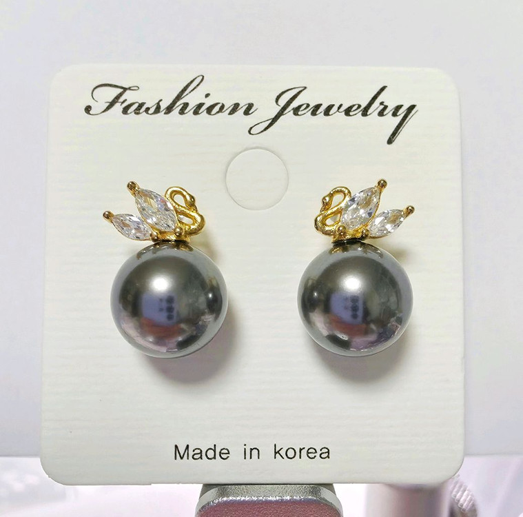 💝일반택배 무료배송 새상품 미착용 주얼리입니다. 실물이 사진보다 더 예쁩니다! Swarovski dark grey pearl 10mm(스와로브스키 다크그레이 흑진주)를 사용한 골드도금 백조큐빅장식 925실버귀걸이(골드도금) 입니다. 가장 이상적인 흑진주 컬러입니다. 오스트리아 스와로브스키 진주를 사용해서 가볍고 물, 땀, 화장품 닿아도 진주 광택이 상하지 않습니다. 광택 우수한 진주입니다. 925은침 재질이어서 알러지 걱정 없이 착용 가능합니다. 저렴한 가격에 데려가세요~ 네고 안 됩니다. 안전하게 포장해서 보내드립니다.