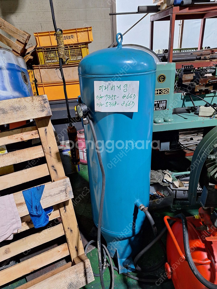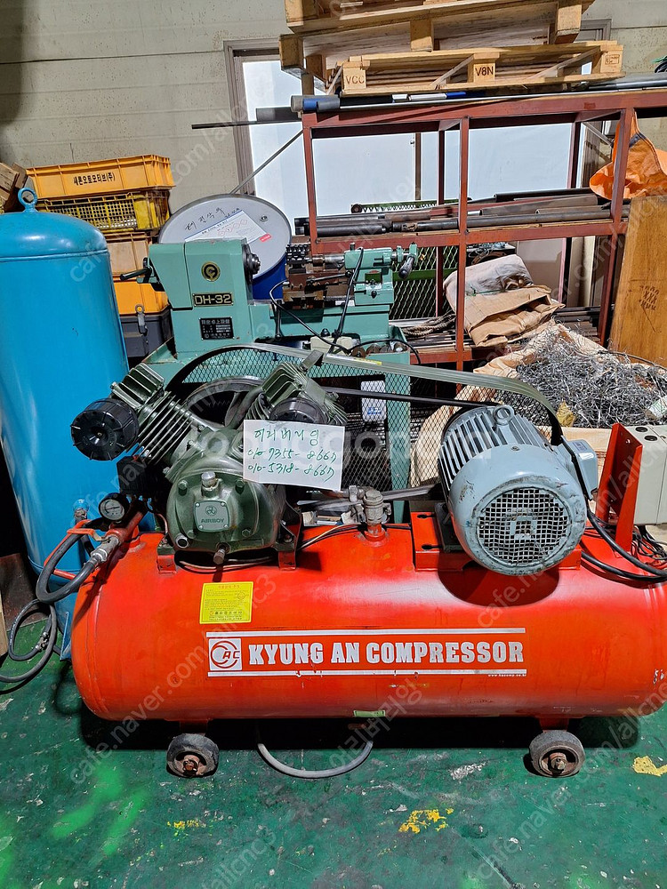 경원 7.5마력 콤프레샤 240리터 및 보조탱크입니다. 다른기계가있어 매각합니다. 정상작동하며 청소해놨습니다. 모터 휀커버는 어제 청소하다 찍혀서 고무망치로 살짝 펴 놓았습니다. 전에 아파트형공장 베란다에서 사용할때 보조탱크에 얼지말라고 열선을 감아서 사용햇습니다. 380V. 5.5KW(7.5마력).남동공단/공장상차도