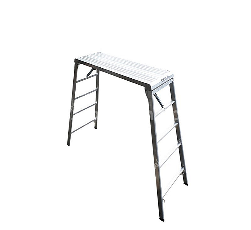 스튜디오에서 페인트 작업용으로 이용했던 우마사다리 입니다. 일반 사다리를 더 자주 사용하여 처분합니다. 높이는 최소 1600mm 최대 1800mm(다리 연장 가능) 상판 작업폭 550mm, 길이 1800mm 입니다. 논현동 직거래하며, 직접 가져가셔야 합니다. 가볍지만 튼튼한 알루미늄 소재이며, 성인 1명이 혼자 들 수 있는 무게입니다.