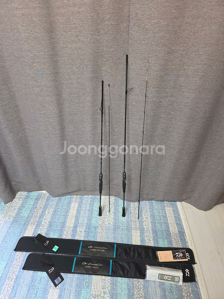 안녕하세요 팁런시즌 시작 되었습니다. 안쓰는 로드 판매 합니니다. 에메랄다스ex 보트 63MLS IL 에메랄다스ex 보트 72MS-SMT 정식 수입 정공 정품 2대 모두 일괄 판매 합니다. 보증서 둘다 보유 기스도 없습니다. 직거래 위치는 역삼동 개나리 아파트 사거리 근처구요 택배 거래는 제로데이 택배 가능합니다. 사진 보시고 연락주세요.